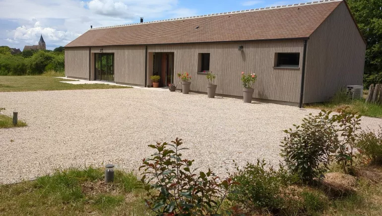 House comprising an entrance hall, kitchen opening onto a dining room and adjoining lounge.