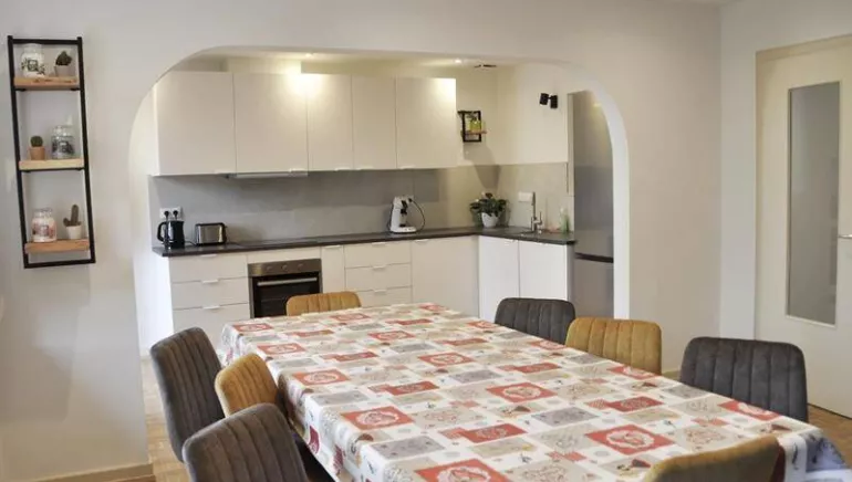 5-room terraced house (4 bedrooms). Private double garage, one parking space. Small covered terrace.