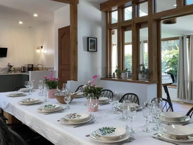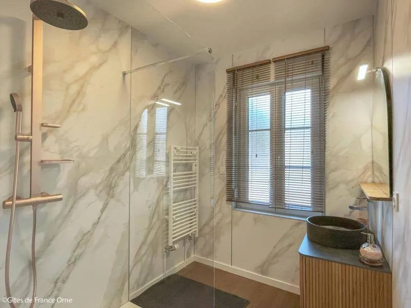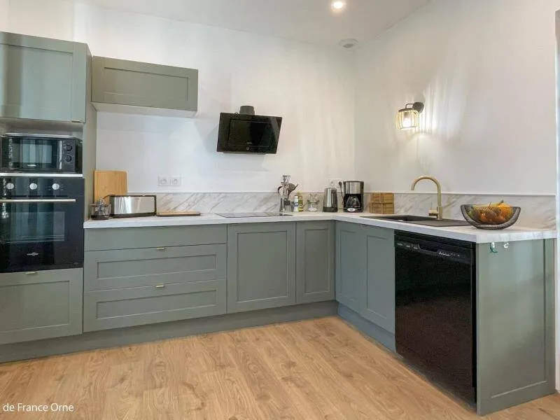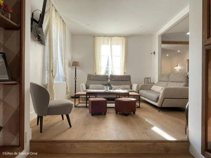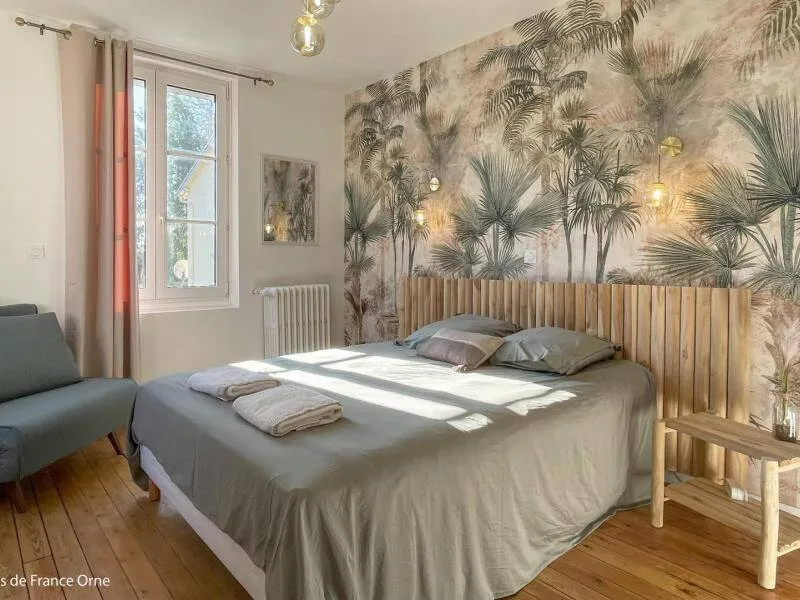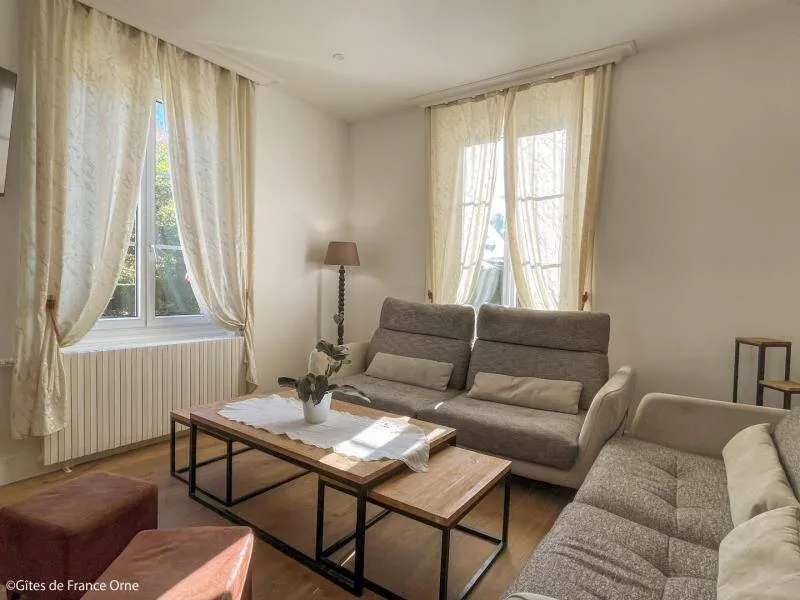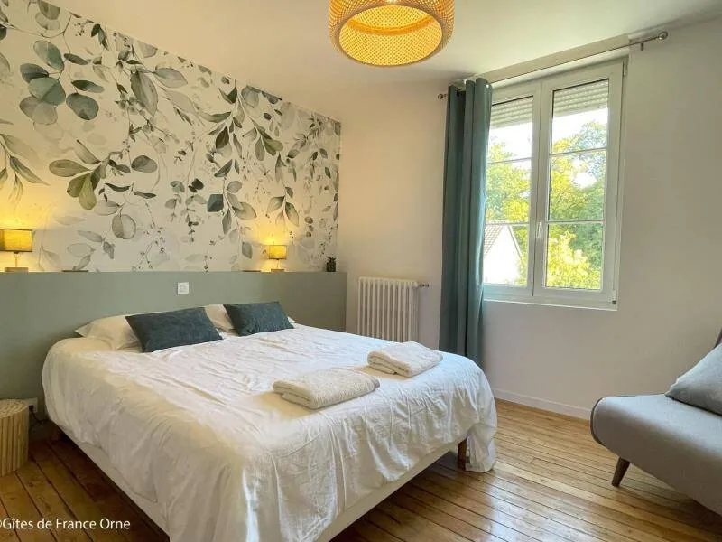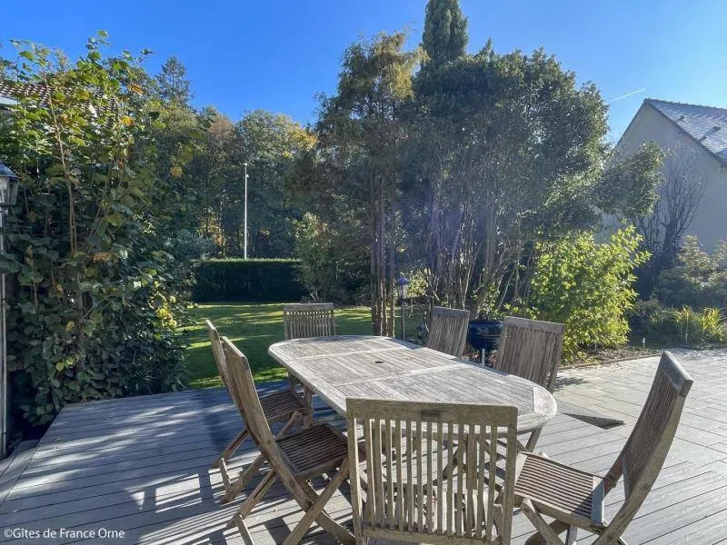 Immerse yourself in the elegance of a Belle Époque-style detached house typical of Bagnoles de l'Orne, for 10 adults + 5 children, with an enclosed garden for a peaceful retreat. Just a stone's throw from the Andaines forest, explore the hiking and cycling trails, and take advantage of Bagnoles' proximity to shops and historic districts.Detached house with enclosed grounds, a stone's throw from Bagnoles town center. Ground floor: - Fitted kitchen - Living room with dining area and two lounge areas with TV, ethanol fireplace, board games - Additional room with table soccer and TV - Laundry room (washing machine, highchair and cot) - Separate wc First floor: - 1st bedroom with bed 160x200 and extra bed (for child), and en-suite shower room (shower and washbasin) - 2nd bedroom with bed 160x200 and extra bed (for child) - 3rd bedroom with bed 160x200 and extra bed (for child) - Shower room with shower Attic dormitory on 3rd floor: 4 beds and 2 extra beds Terrace with garden furniture and barbecue Bicycle garage with charging point Deckchairs