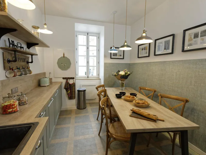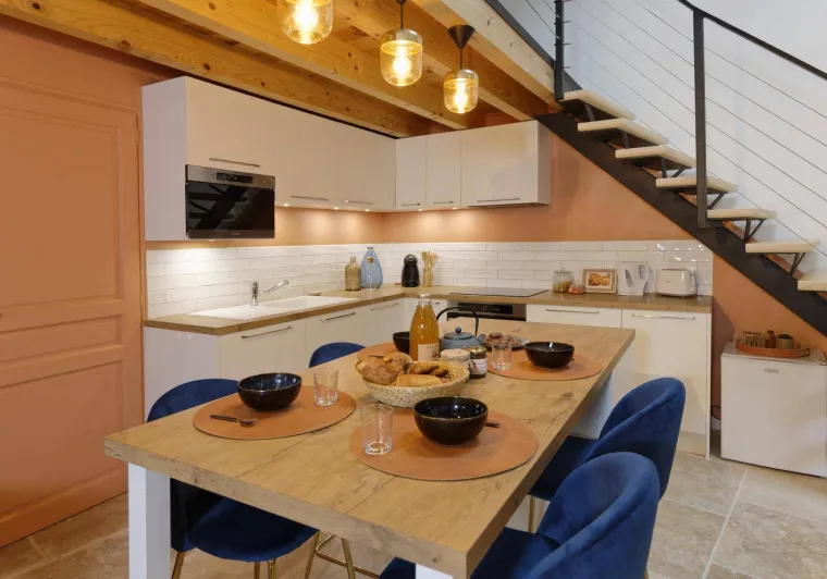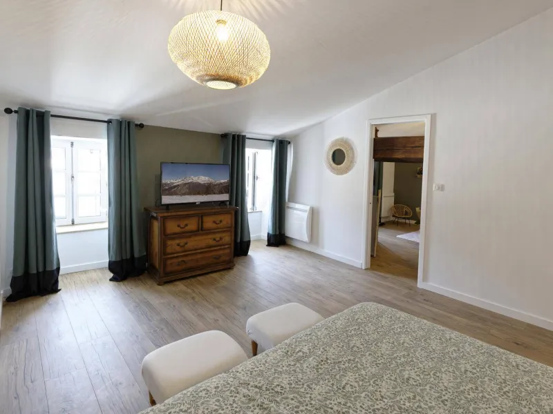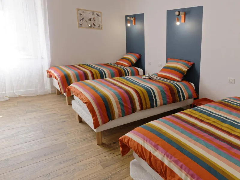 RDC : hall d'entrée (sas, rangement). Cuisine intégrée. Séjour avec coin salon (poêle à bois), TV connectée, accès Internet. Buanderie/cellier avec lave et sèche-linge. WC (lave-mains). Étage : 1 chambre "dortoir" avec 3 lits 1 pers, 1 chambre "Verrière" avec 1 lit 2 pers, 1 chambre "Art Déco" avec TV et 1 lit 2 pers, 2ème étage réservé à la chambre familiale composée 2 chambres avec 1 lit 2 pers et 1 lit 1 pers. Les lits 2 pers sont tous en 160x200 cm. Chaque chambre disposent d'une salle d'eau + WC privatifs. Jardin commun avec le gîte n°2 . Il est en partie clos, accessible par le 1er étage et l'extérieur avec table de jardin, chaises, plancha, table de ping-pong commune. Local de rangement commun (vélos, skis...). Garage (petite voiture) + Parking privatif situé à proximité. Point de recharge électrique communal à 200 m. Équipement bébé. Chauffage électrique avec climatisation réversible au 1er étage. Possibilité de réunir les gites 1 et 2 du presbytère pour accueillir 13 pers. Un enfant du pays et son épouse ont aménagé ce superbe presbytère du 17° siècle en véritable havre de quiétude. Très confortable, spacieux, réhabilité par des artisans locaux et passionnés, ce gîte est décoré avec recherche et beaucoup de goût. On admire les matériaux nobles utilisés qui côtoient un équipement des plus moderne. Il accueille petite et grande famille, groupe d'amis ou regroupement professionnel en quête de dépaysement. On apprécie tout particulièrement l'indépendance permise par les sanitaires privés à chaque chambre. L'ancien "jardin de curé" aménagé en espace détente et de jeux est une véritable bouffée d'oxygène accessible également depuis l'intérieur ou l'extérieur. Le plus, sont les prestations de service proposées par les propriétaires qui s'investissent pour faire revivre ce village à proximité du Château de Montségur et sur la route de la station de ski des Monts d'Olmes : cours de yoga, massage, repas...Localisation