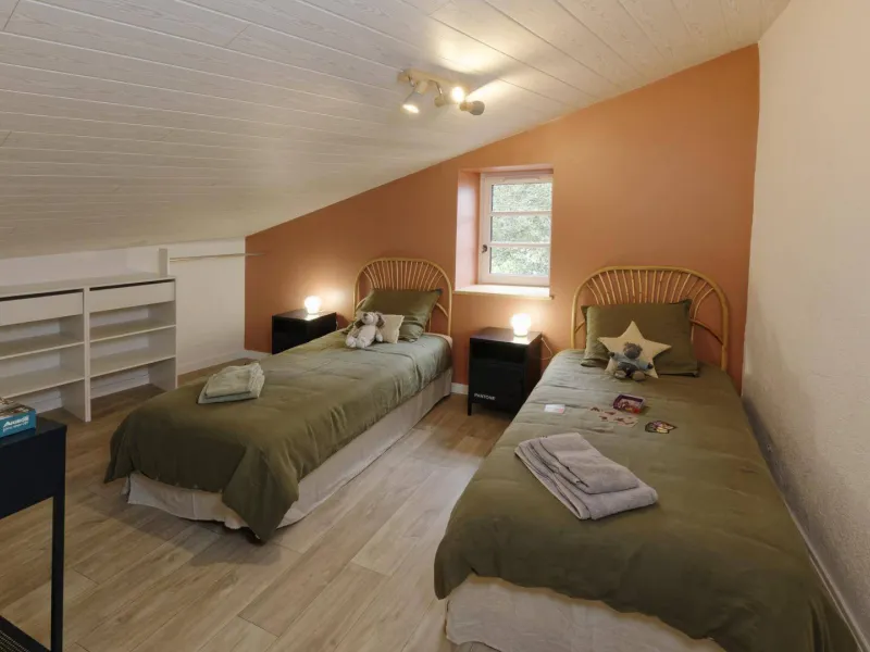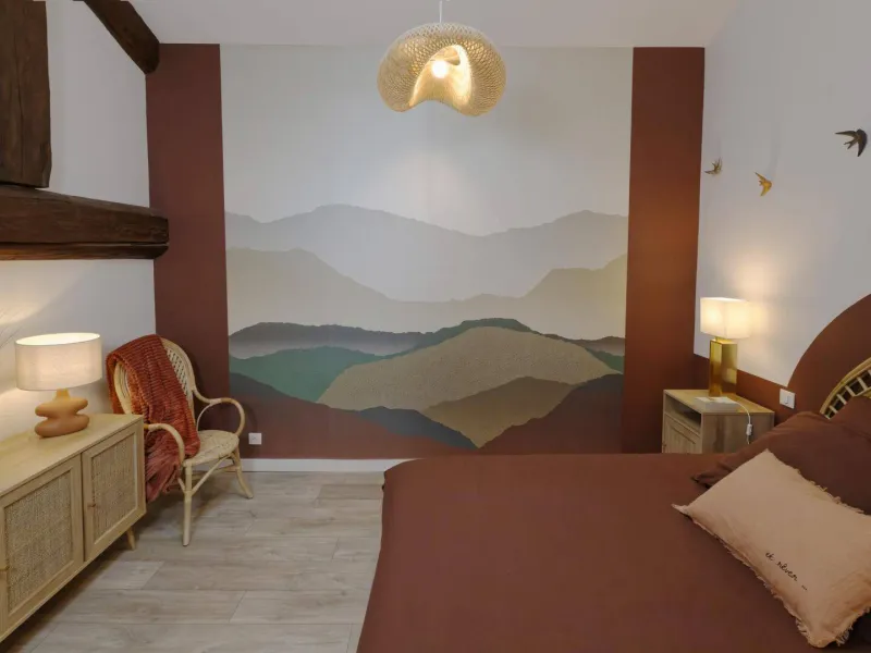 C'est sur les hauteurs du village de Montferrier, côté jardin que se situe l'entrée de ce gîte. La carte de la modernité aux teintes méditerranéennes alterne avec le bois et les pierres apparentes du lieu. On admire ce contraste harmonieux contemporain du séjour et de l'escalier en acier, qui rejoint l'espace nuit plus traditionnel avec les poutres apparentes. Le plus, sont les prestations de service proposées par les propriétaires qui s'investissent pour faire revivre ce village à proximité du Château de Montségur et sur la route de la station de ski des Monts d'Olmes : cours de yoga, massage, repas. Possibilité de réunir les gites 1 et 2 du presbytère pour accueillir 13 personnes.Rez-de-chaussée : Séjour avec Coin Cuisine intégrée et espace salon (téléviseur écran plat, accès Internet. Wc avec lave-mains. Étage : Palier avec bibliothèque variée. Dégagement aménagé en espace buanderie avec lave et sèche-linge. wc avec lave-mains. 1 chambre avec 2 lits 1 pers. 1 chambre avec 1 lit 2 pers (160 cm), Salle d'eau avec douche à l'italienne, double vasque, radiateur porte-et sèche-serviettes .Jardin en partie clos accessible par le 1er étage. Il est commun avec le grand gîte et comprend tables de jardin, chaises, plancha, table de ping-pong commune. Parking privatif commun situé à proximité. Équipement bébé. Chauffage électrique avec climatisation réversible dans le séjour. Possibilité de réunir les gites 1 et 2 du presbytère pour accueillir 13 personnes. Point de recharge électrique communal à 200 .