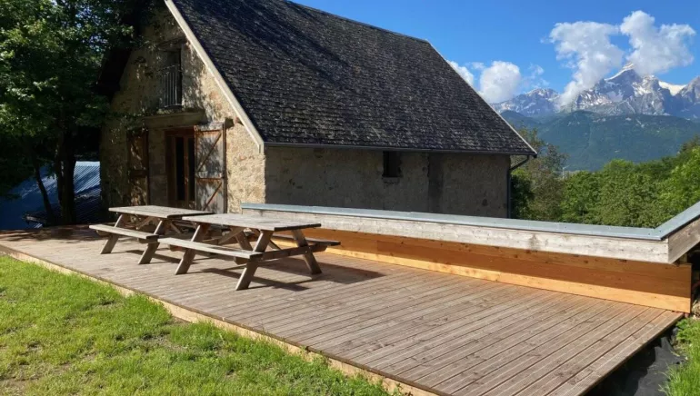 Outside, a large garden area will allow you to have your meals or relax with a beautiful view of our mountains, without forgetting the swimming pool which has just been installed.