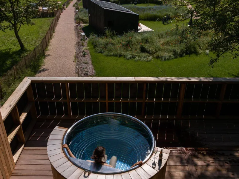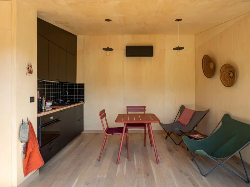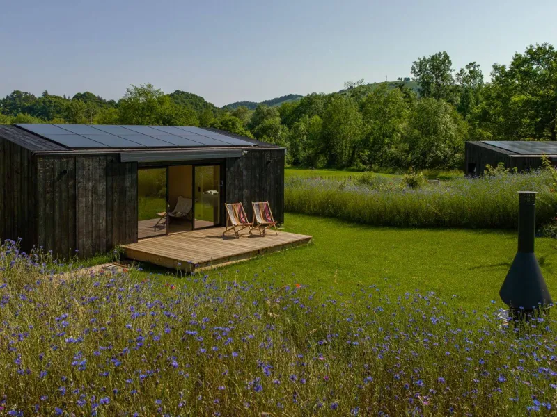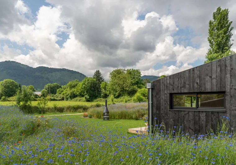 Surrounded by meadows, hills and peaks, our four K-banes (tiny houses) are located just a stone's throw from the river on the edge of Arette, a small village in the Haut-Béarn region nestled in the Barétous valley, on the edge of the Basque Country and in the heart of the Atlantic Pyrenees (64). Here, the mountains are grandiose and gentle, the lights are beautiful and the seasons are flamboyant. The elegant architecture and the pure lines of our K-bane fit soberly into a beautiful and generous nature. The deep black cladding made of burnt wood makes it a sober and precious object. This natural technique called Shou-sugi-ban (or Yakisugi), which consists of burning the surface of the wood, originates from Japan. A laundry room with washing machine and dryer is available, as well as a bicycle room. There is also a Nordic bath in the open air.Localisation