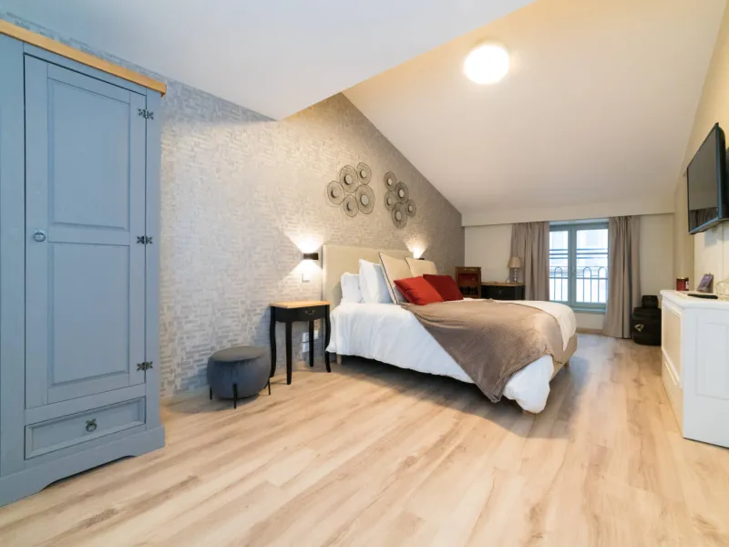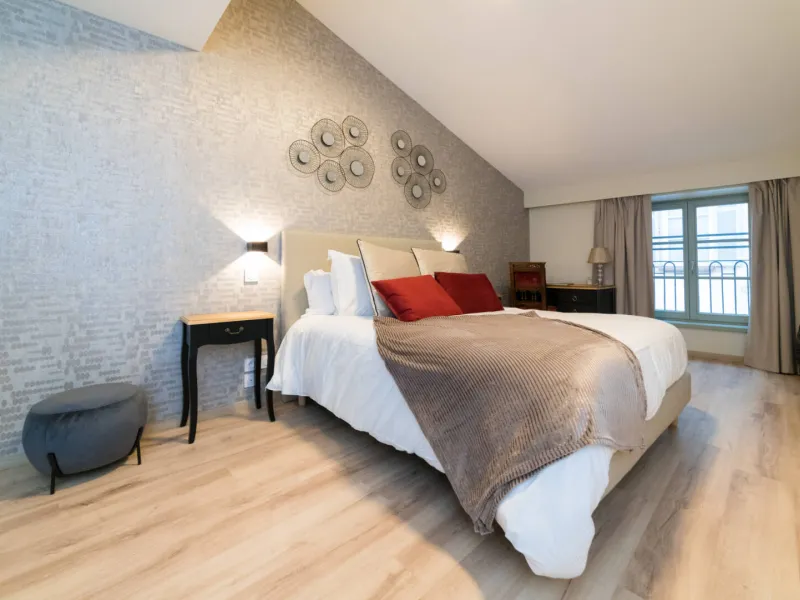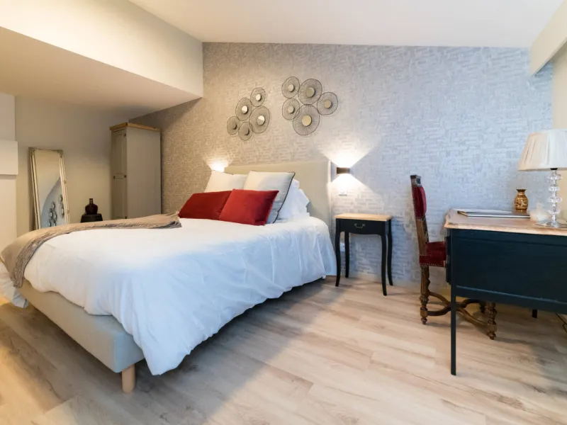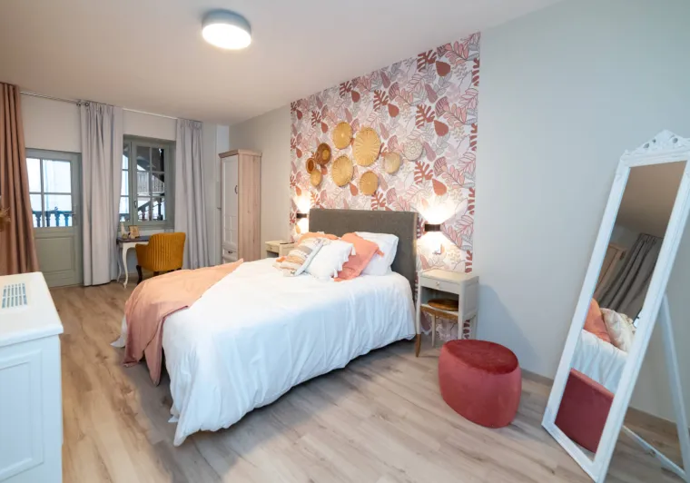 A cellar atmosphere in pastel and burgundy shades, reminiscent of stone and the velvety texture of wine. You're sure to appreciate some of the authentic decorative features that will make you want to go wine tasting and discover the cellars of the Mâconnais and Beaujolais regions!