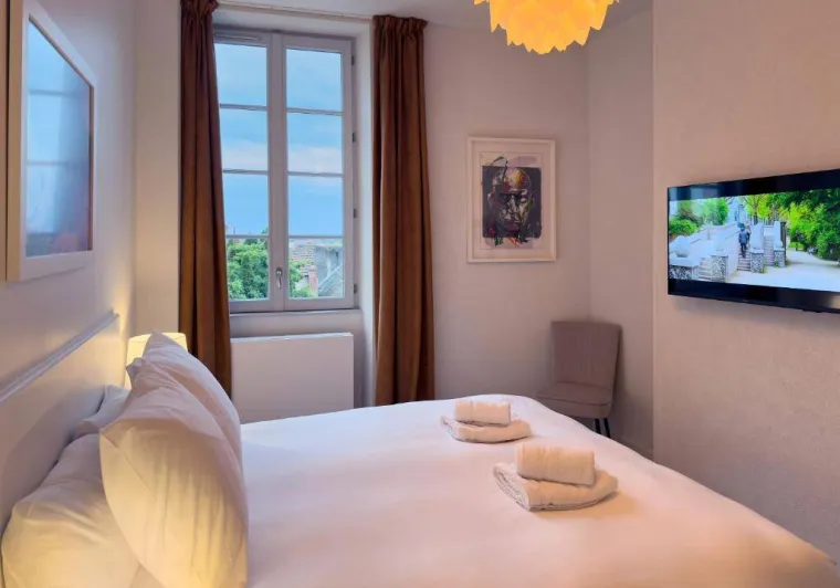 Welcome to La Suite La Chapelle, the jewel of Nevers!Nestled in the city centre, this exceptional suite offers a breathtaking view of the St Cyr, Ste Julitte cathedral. Unique in its kind, it is the only 5-star rated accommodation in Nevers. You will be amazed by its authenticity and luxury.