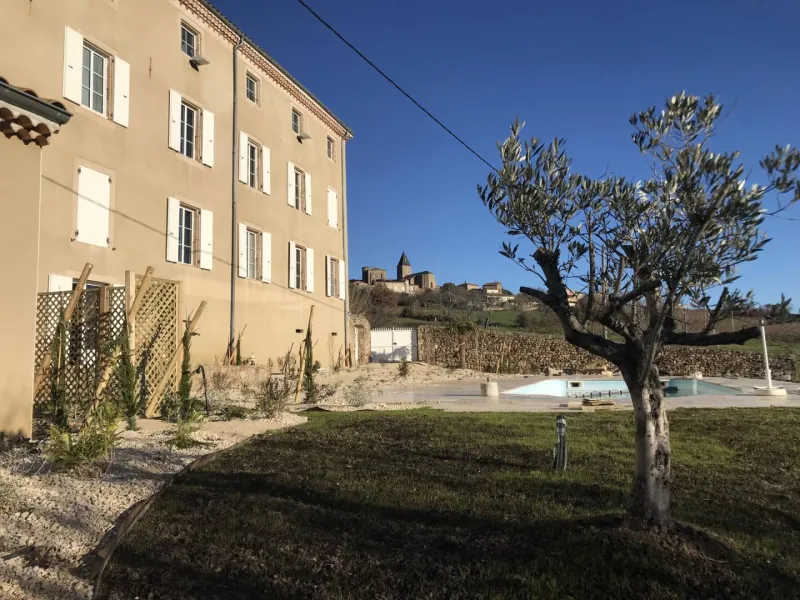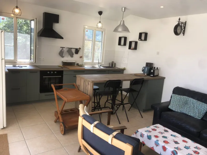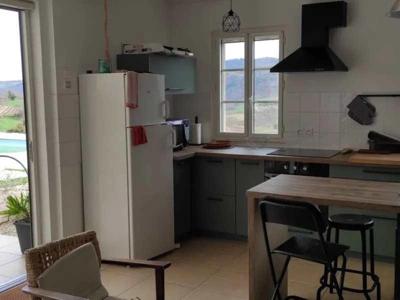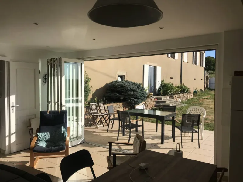 A sunrise by the pool, a morning dip to start the day, Chardonnay offers its guests autonomy in an idyllic setting. The large terrace, shaded by the awning and plantings, provides additional living space in fine weather for this refurbished 50 m2 gîte, spread over two levels. Upstairs: two bedrooms of 10 and 12 m2. The first has a double bed and the second a double bed and two bunk beds. On the first floor: a fully-equipped kitchen, dining area and living room, as well as a bathroom and separate toilet. The gîte is equipped with a dishwasher and washing machine. A large bay window opens accordion-style across its entire width, giving direct access to the terrace and swimming pool. Here too, the view is bucolic, offering a 180-degree panorama over the village and the Doux valley, with no overlooking.Localisation
