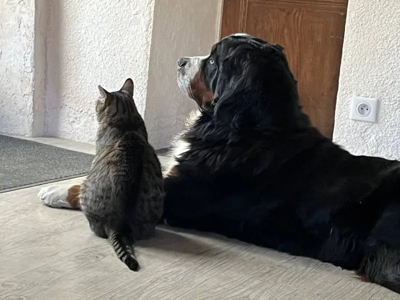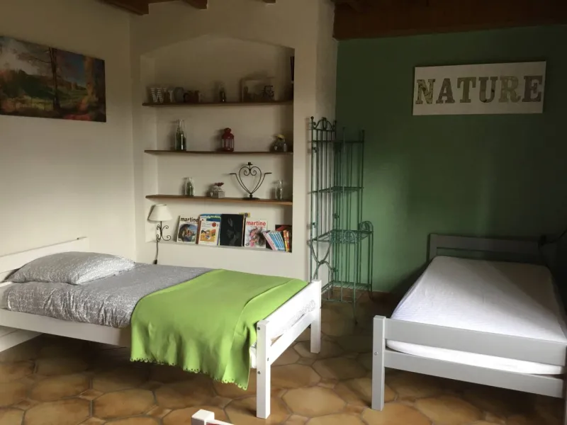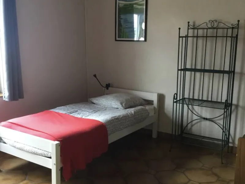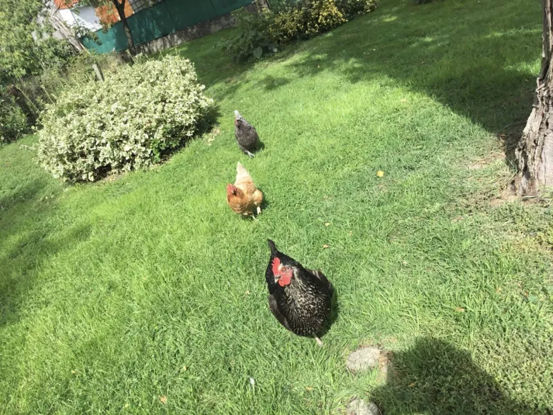 Le terrain est partagé avec les animaux de la maison (poules, chats, chien) et le propriétaire.Localisation