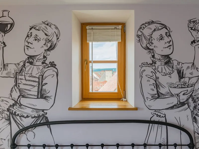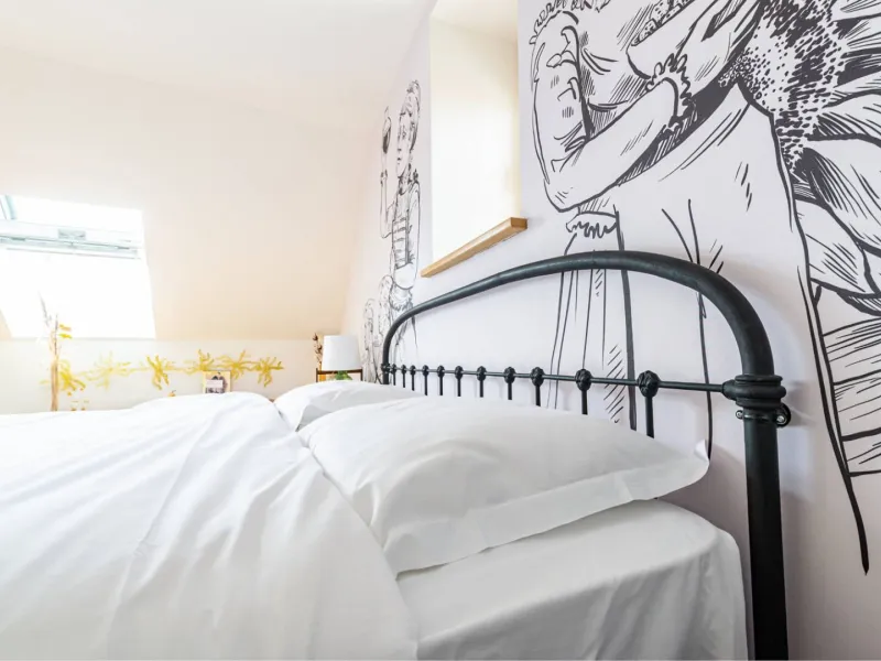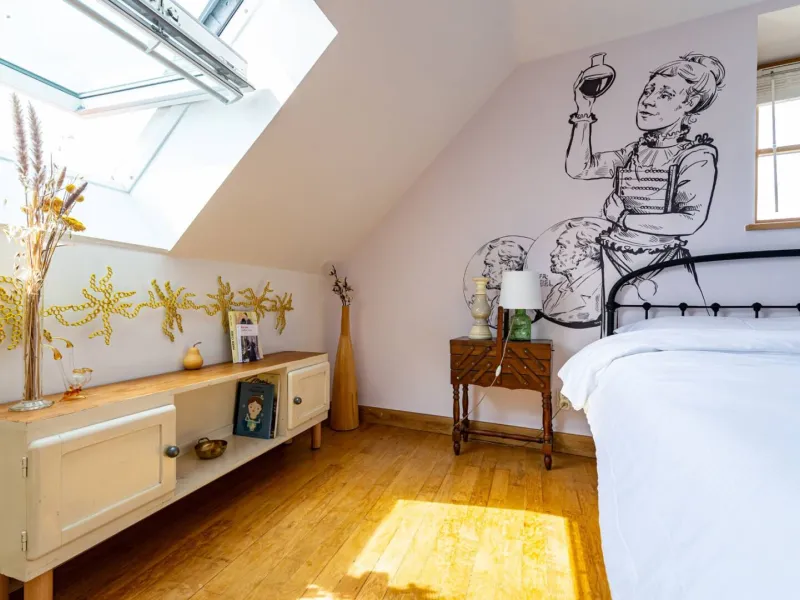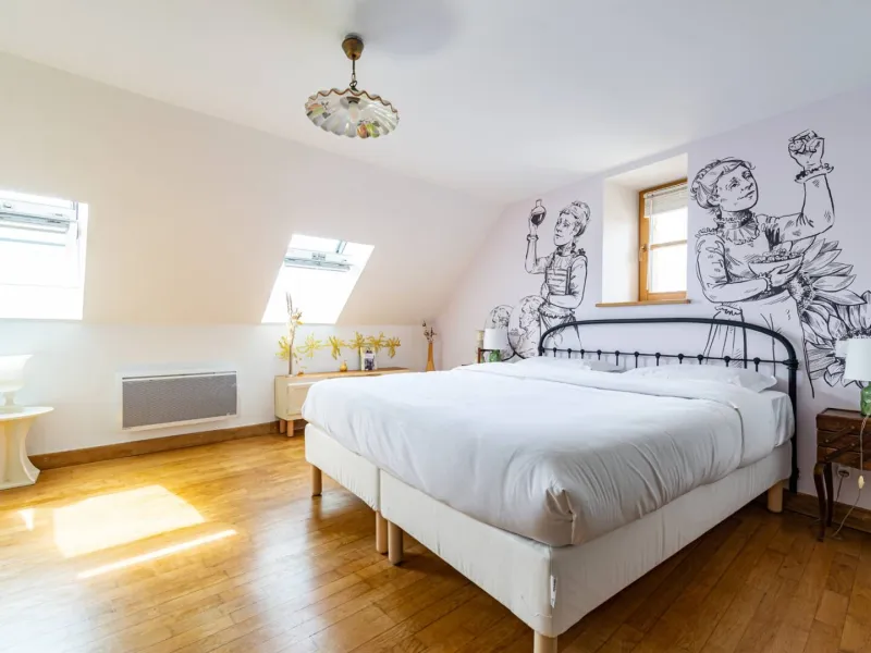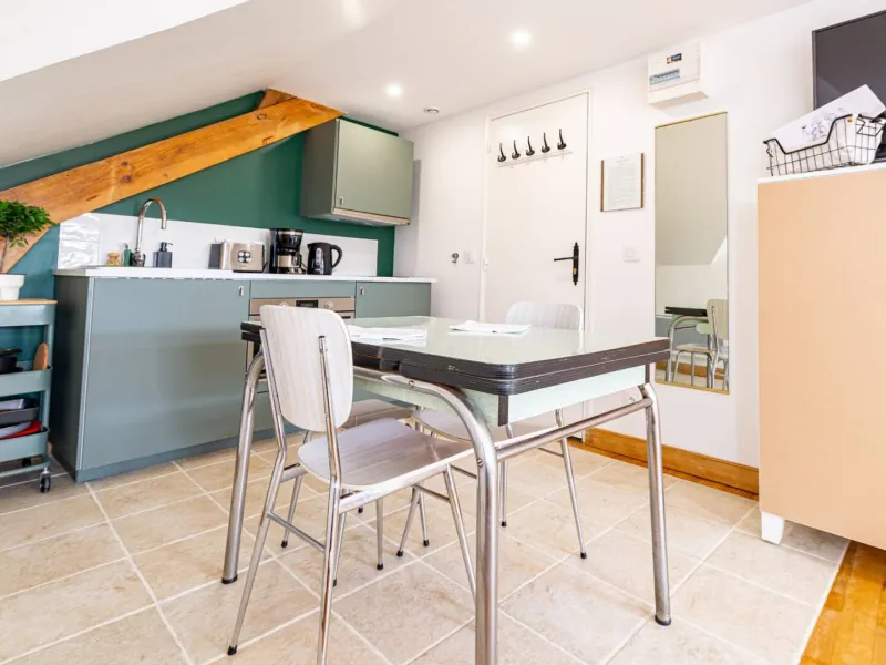 Composed of a king size double bed (possibility of separate bedsprings), a sofa bed, a fully equipped kitchen and a bathroom with a large Italian shower (separate WC), the MARIE apartment is ideal for a family with a child or for three friends (three separate beds). The studio is very pleasant with a beautiful luminosity (sunset on the valley) and nice views on the village. On request, we can provide you with a cot, a nice cot and/or a high chair for your baby free of charge. During your stay, if you require extra cleaning, please select the "extra cleaning" option when booking. Upon arrival, we will schedule the day of your choice together. Breakfast and tapas are served in the bar of La Maison George. A take-away formula to be enjoyed in your room is possible on request! Ask at the bar directly on arrival.Localisation