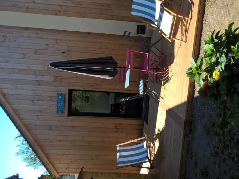 L'Atelier is a house with a modern decor and "home staging". Rent for one or more nights this large living room, bright thanks to the bay window, with the bedroom on the mezzanine, the bathroom and the sauna is at your disposal for a quiet and relaxing stay.Localisation