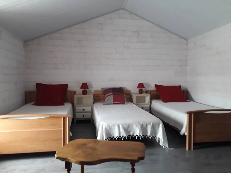 Gîte La Planque is a group gîte for families and friends. The gîte is located in the oldest part of the village, just a short walk from the village centre where you will find all the shops you need: bakery, butcher's, delicatessen, grocer's, chemist's, etc. It is ideally situated for exploring the surrounding area: La Rochelle, Le Puy du Fou, Le Futuroscope...It is a 170 m² house, with on the ground floor a kitchen-dining room (kitchen equipped with a gas cooker with electric oven, a microwave, a fridge-freezer, a dishwasher and a washing machine), a living room with T.V. and D.V.D., a veranda, a bedroom with 2 single beds (180 if you put them closer together), a bedroom with 4 single beds (or 1 double and 2 single beds), 2 shower rooms and 2 toilets. Upstairs, a bedroom with 2 single beds, a bedroom with 4 single beds and a shower room with toilet.