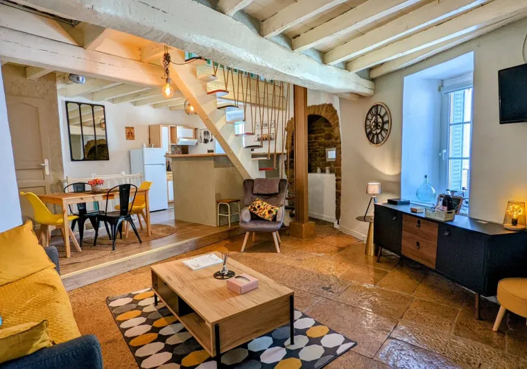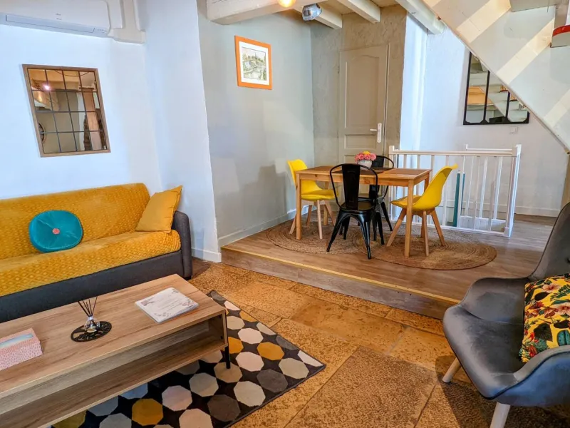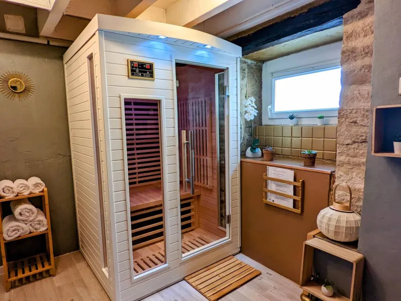 15 minutes from Dijon, in a village on the banks of the Burgundy Canal, with all amenities, this pretty atypical house comprises: on the ground floor (raised ceiling): living room (sofa bed offering 2 extra beds), with TV, Bluetooth speaker, opening onto dining room and fitted kitchen. Lower floor: bathroom with bath and WC. Zen area with infra-red sauna, relaxation lounge with herbal tea room. 1st floor: 1 bedroom with 1 x 160 cm bed and 1 bedroom with 2 x 90 cm beds. Reversible air conditioning. Parking space. Small terrace with garden furniture, barbecue and parasol.