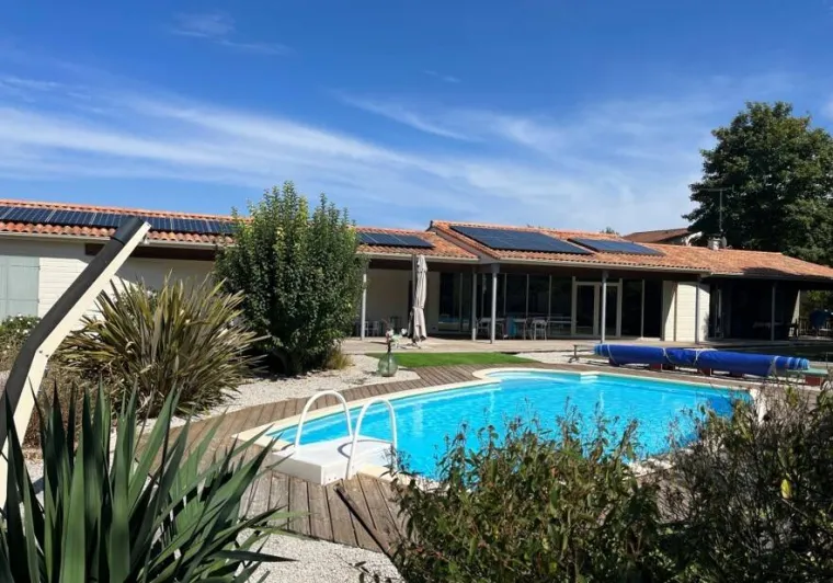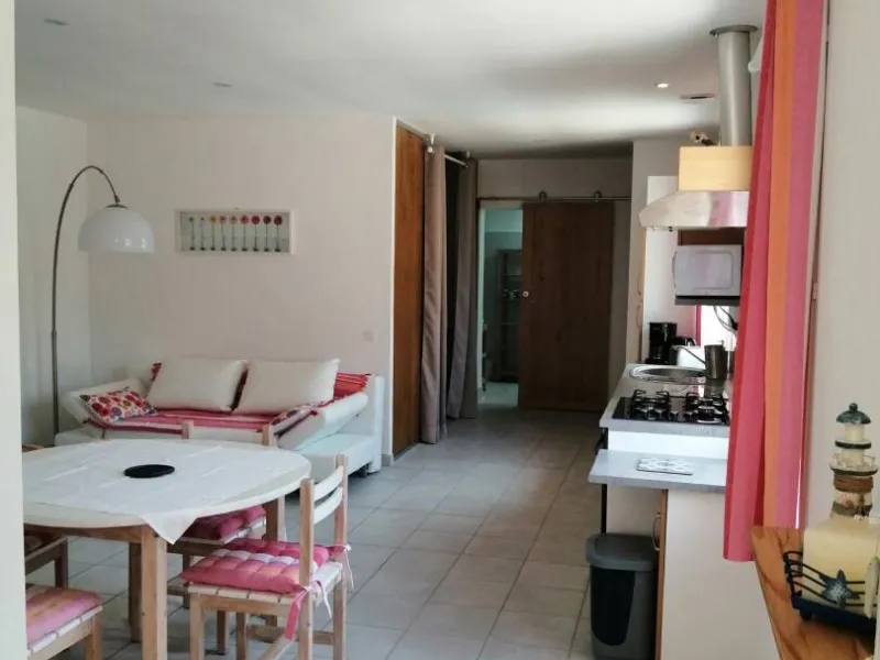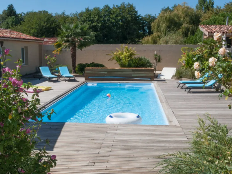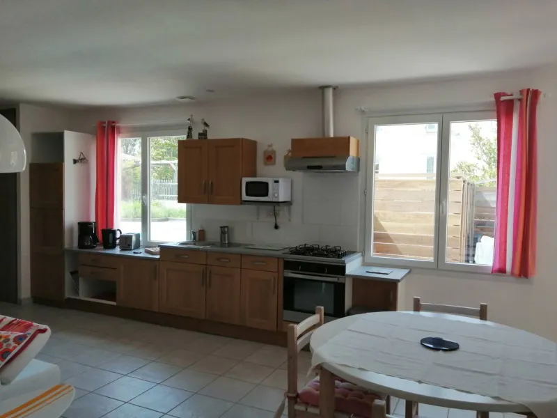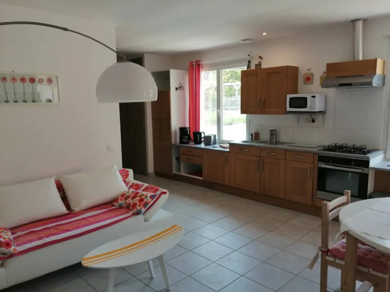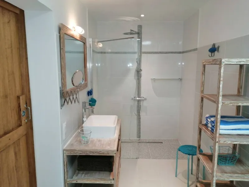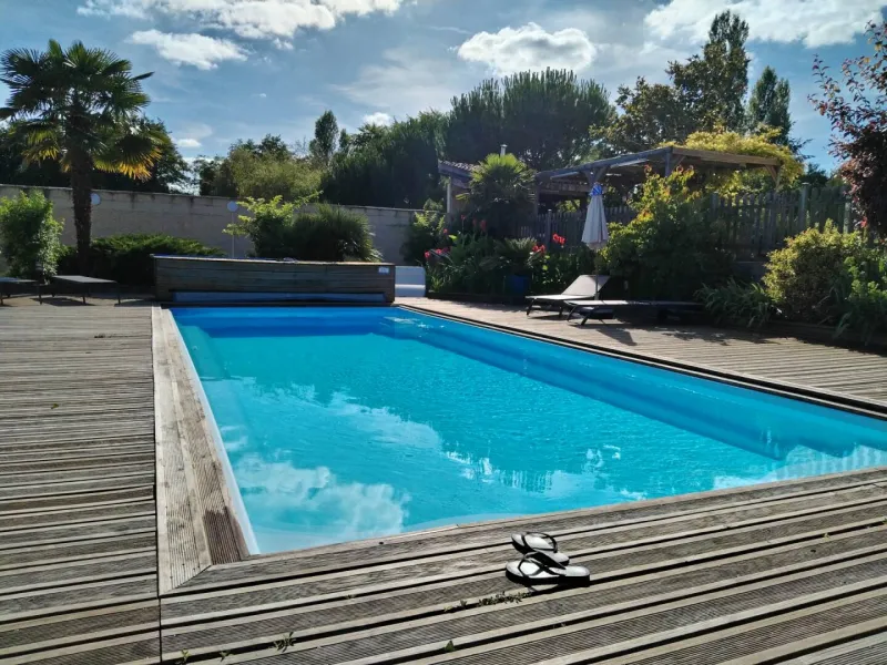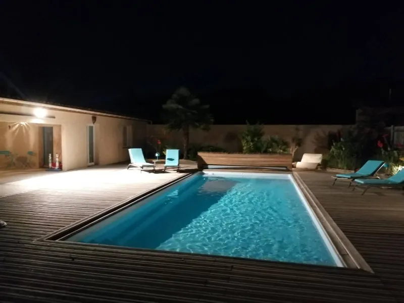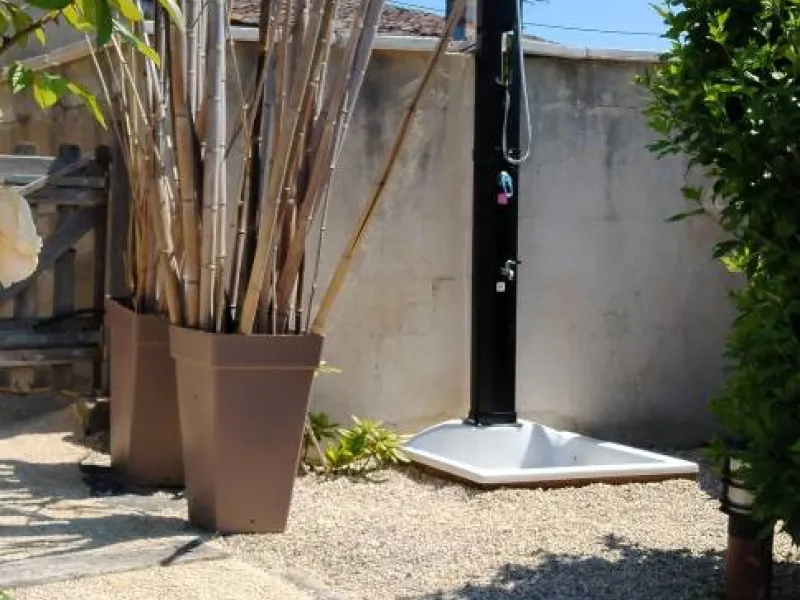 Dane is a single-storey gîte with fitted kitchen, living room, sitting room, 2 bedrooms, one of which can be closed with blackout shutters, bathroom with Italian shower, private entrance and 40m² terrace with barbecue and garden furniture.Next to the terrace, you will find relaxation by the swimming pool heated to 26°c (May to Sept), sun loungers, pool house, outdoor shower. The boulodrome (boules provided) is available for a fun evening, to be shared only with the owners (2 people) (molkky, ping-pong table, volleyball in the pool).