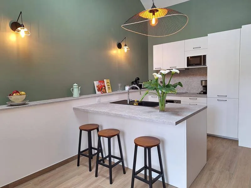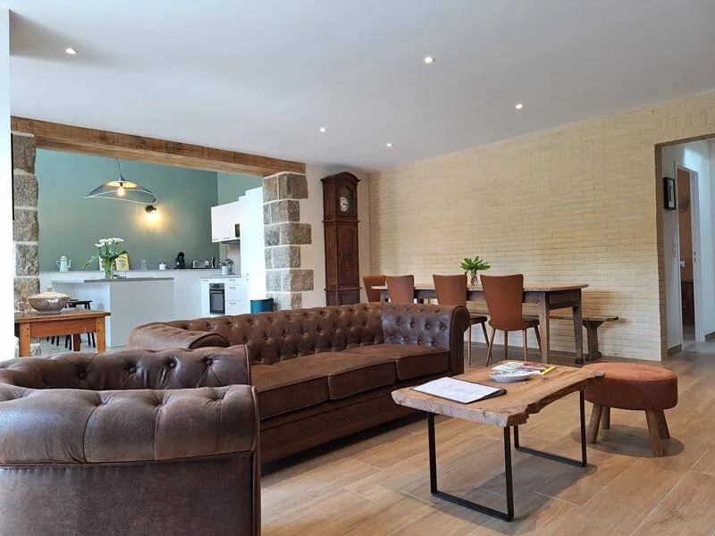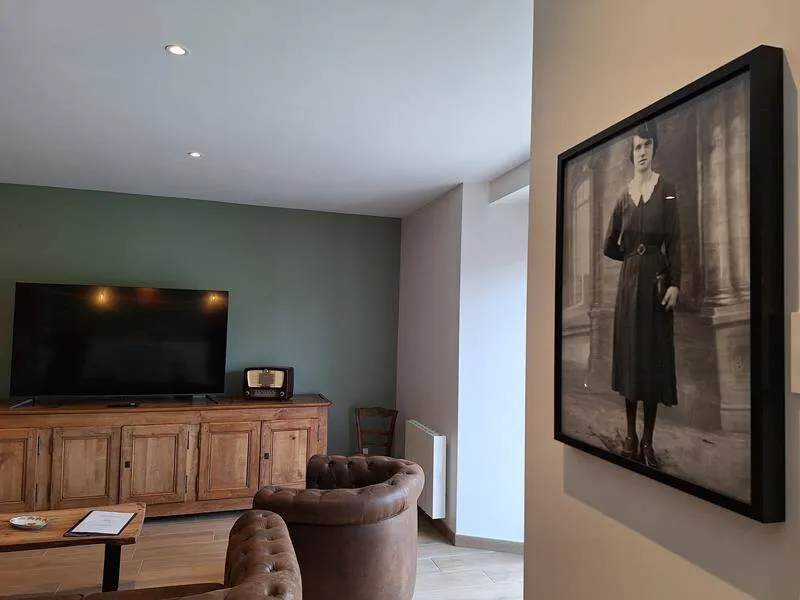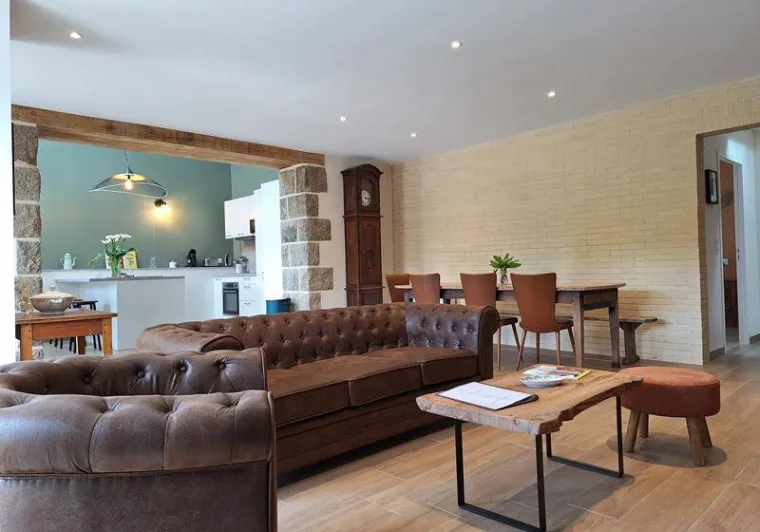 The Gîte "Chez Matilde" sleeps 6 people. Set in an old, characterful building that has been completely renovated, you'll be won over by the charm of the past combined with all the modern comforts you could wish for. The large lounge opening onto the kitchen promises warm, convivial moments to spend with family or friends. Direct access to the outside terrace is a real pleasure. Inside, real family photos add to the authentic character of this gîte: Mathilde is none other than the owners' paternal grandmother.This gîte adjoins another gîte, "Chez Yvonne", which sleeps 12. Both gîtes can be rented at the same time.