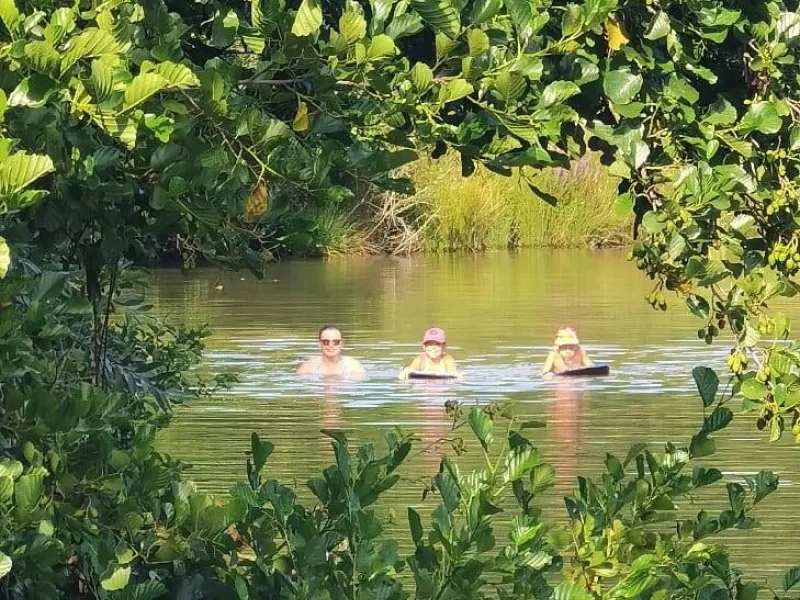 Le gîte est équipé d’une belle terrasse de 15 m² surplombant les prairies verdoyantes avec vue sur les prairies des poneys et la pointe de l’étang et d’un jardin de 130 m² entièrement clôturé et indépendant avec portail. Vous pourrez vous détendre sous la pergola avec ses transats, ses fauteuils relax, sa table et ses chaises d’extérieures. Un barbecue à charbon vous permettra de déguster de bonnes grillades face à l’étang !