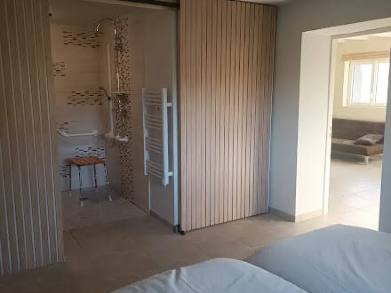 Lieu de ressourcement à part entière, sa propriété de verdure et son étang en font un véritable lieu de repos et de reconnexion à la nature. Calme et bien-être à 5 minutes de la ville de Moulins !Au rez-de-chaussée, la cuisine est entièrement équipée et accessible PMR, elle possède une table pour 6 convives confortable pour une grande tablée. Le salon est doté d’un grand canapé avec méridienne. Les toilettes sont indépendantes pour plus de confort et accessibles pour les personnes à mobilité réduite avec barre d’appui. Une belle chambre parentale accessible PMR est dotée de deux lits simples de 90, possible d’assembler en un lit parental de 180. Elle possède une salle de bain privative avec une grande douche à l’italienne de 160 x 100 et barres d’appui. Tout est accessible pour les personnes en situation de handicap !