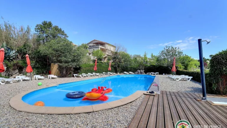 Swimming pool (18x6m) with 2.5m diving pool and paddling pool for children, open May to September. Enclosed parking area. See availability and special offers on owner's website. Washing machine shared by 2 gîtes (extra charge). 3 other holiday rentals on site. Sleeping accommodation for 10 people if gîte no. 61018 rented at same time.