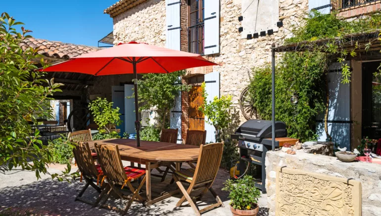 Surrounded by the prestigious Gigondas vineyards, close to the mountains, with panoramic views all the way to the Cévennes, Mas de Lencieu is an exceptional, calm and rejuvenating place. The west-facing apartment has a large terrace with a magnificent view over the vineyards and the Rhône Valley. A small olive hedge borders the access to the gîte. Private parking is available close to the Mas. A gently sloping ramp leads up to the gîte. Christine and Jean-Pascal are delighted to welcome cycling tourists to this magnificent character house, and to provide them with all the facilities, services and documentation they need for a stay of three days or more. There are many cycling routes in the vicinity to discover the famous Ventoux region.