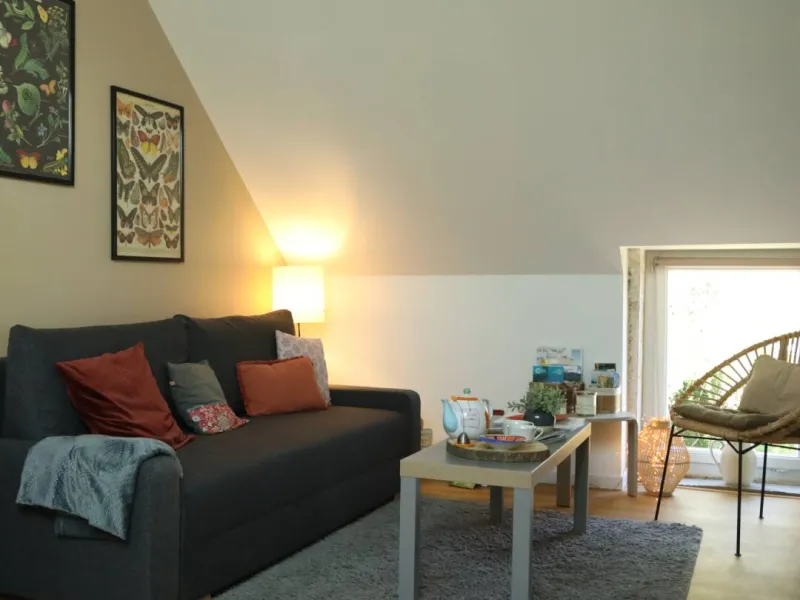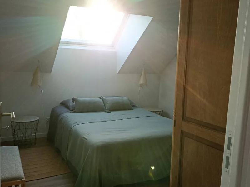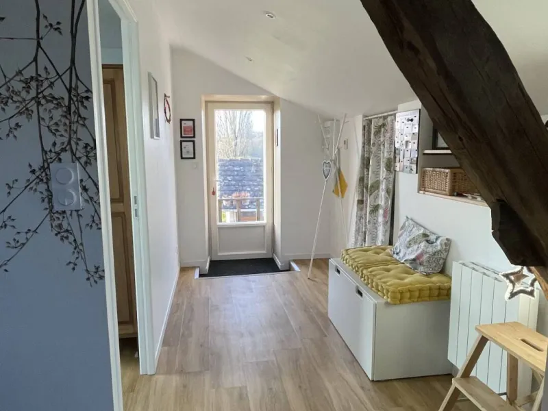 It is located on the upper level of the house, formerly the hay barn, which has just been completely renovated. It is accessed by a separate external stone staircase.