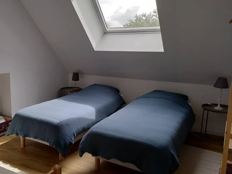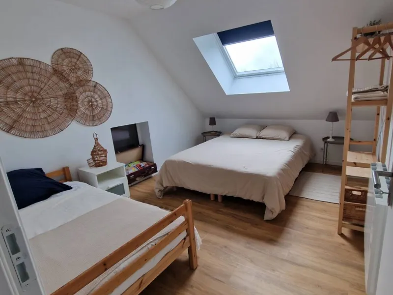 This is a family room with a double bed and a single bed, but it can also be transformed by separating the double bed into 2 single beds.