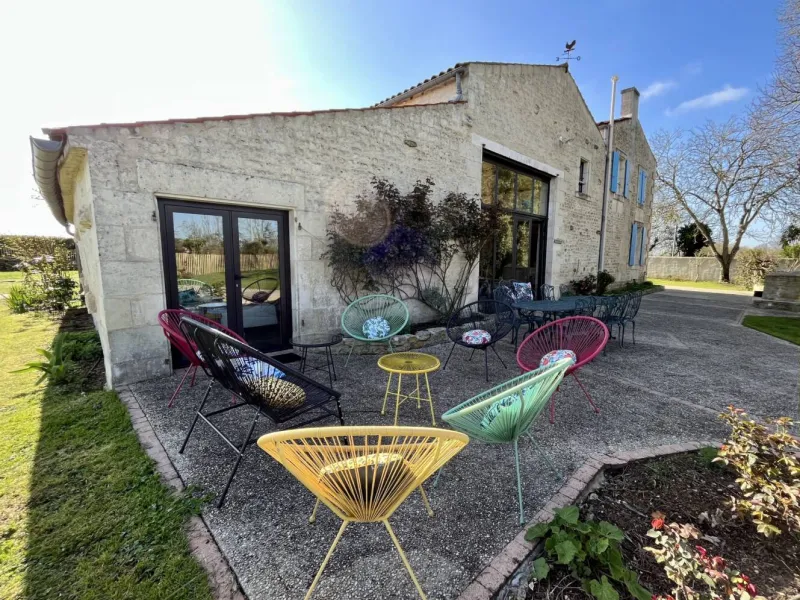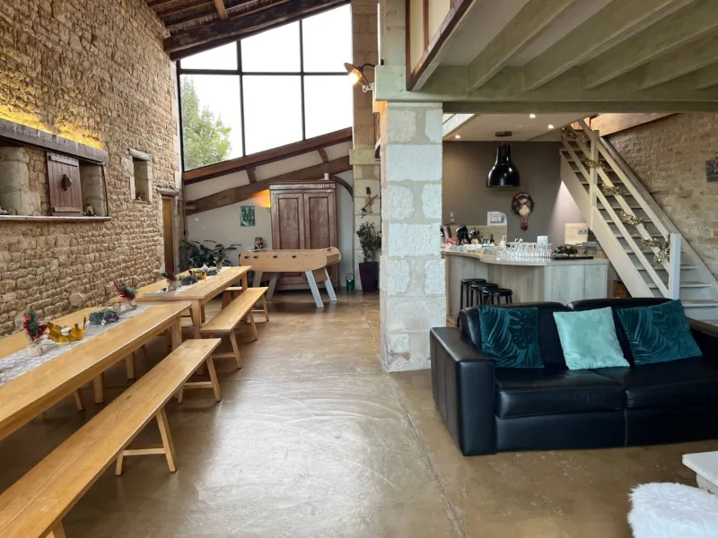 Gîte in an old renovated barn, adjoining the owners' house, situated in a 3500 m² property in the heart of the Venise Verte, close to another gîte. The ground floor comprises a large living room/lounge/kitchen, 2 bedrooms (1 x 160cm bed + 1 x 90cm bed) (2 x 90cm twin beds + 1 x 90cm bed), each with its own private shower room and separate private WC, and an additional separate WC. Upstairs, a mezzanine with a relaxation area (games, books) and 1 bedroom (1 double bed) with its own private shower room and separate private WC. Free Wi-Fi.Outside: 2 private terraces (garden furniture) and a stone barbecue area. Shared with another gîte and the owners: car park, large enclosed garden with swimming pool (5x10m) open from 01/05 to 28/09 heated by geothermal energy (minimum 24° and if outside temperatures exceed 20°) and enclosed by a safety barrier (with opening/closing times to ensure cleanliness and hygiene), children's play area, petanque area, adult bikes (baby seats available), rowing boat available (life jackets).