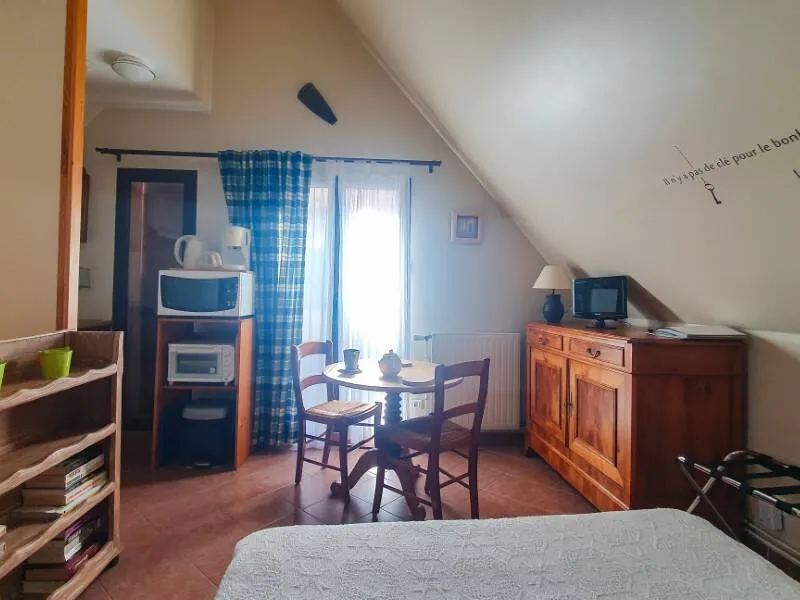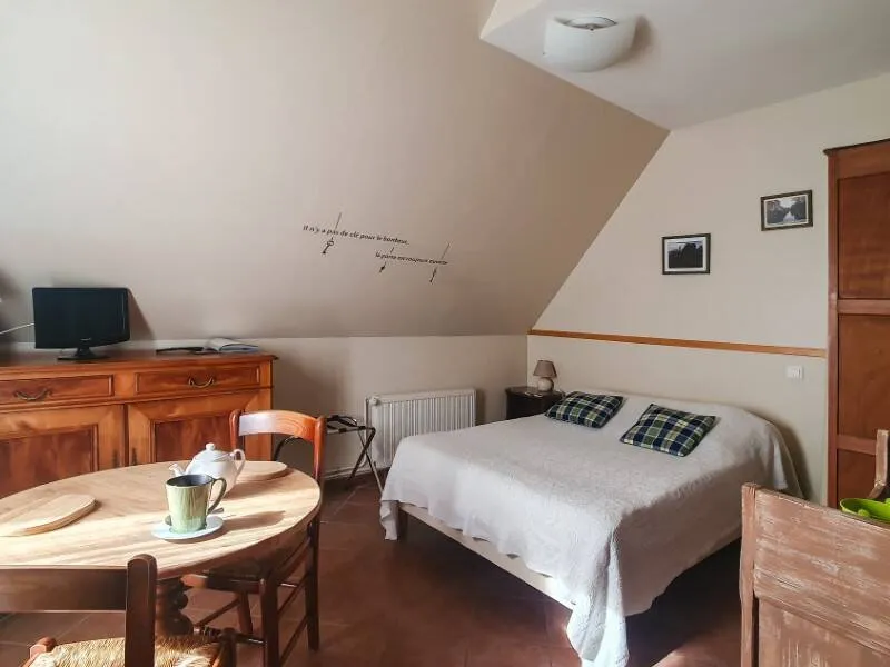 Non-smoking fully fitted studio of 20 m² on the first floor. Double sofa-bed and TV. Kitchenette with microwave. Shower room/WC. Central heating included and sheets supplied. Locked garage. WIFI internet access. Animals not admitted.Localisation