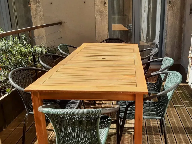 Ideally located in the heart of the Bastide Saint Louis de Carcassonne, within walking distance of all the amenities and remarkable sites of our town, "le Sélamat" is a very large, fully-equipped gite with 4 bedrooms and 2 bathrooms/WC that can accommodate 2 to 8 people and a baby. Newly renovated and modernized while preserving its charm of yesteryear, it is located on the 1st floor of an old mansion of the 16th century. In a quiet area, it has a balcony and a terrace, each overlooking one of the surrounding inner courtyards.Free access to the WIFI network. Bed and bath linen included in the rates.