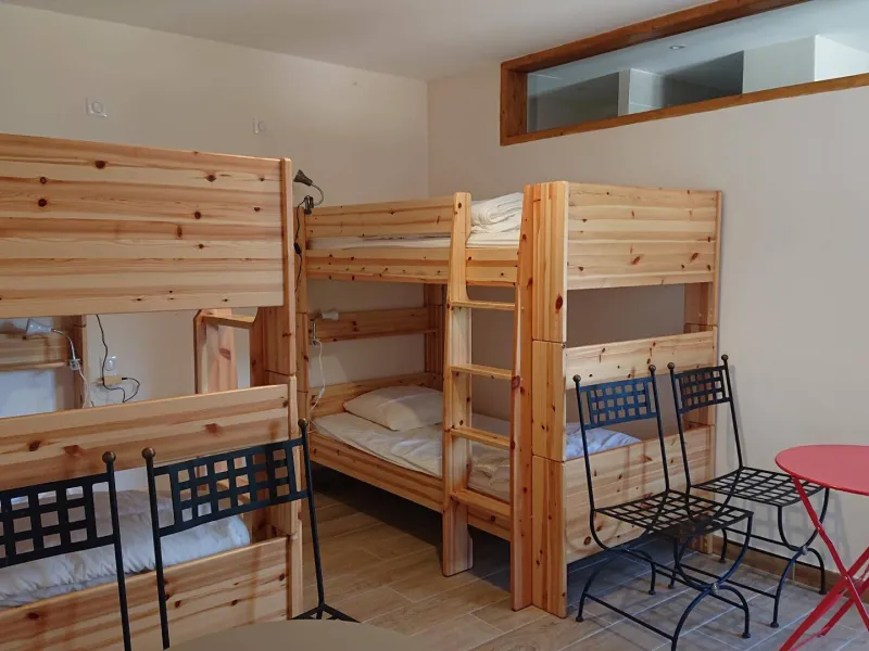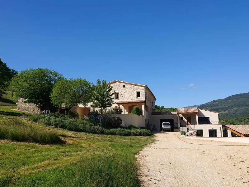 There are 5 Gîtes d'Adrien (2 to 8 people) on 19th century family farm with view of Les Aiguilles mountain, the Mont Rond and the Rocher du Caire, all ideal for walking/hiking and observing vultures and birds of prey. At end of day, relax and get together around the shared indoor swimming pool (8x4.5m, 1.30m deep), heated April to October. All the gîtes are comfortably equipped. Shops/services in village: minimarket with petrol station, chemist's, Post office, free shows. Cornillon lake (swimming, fishing) 5km. Near Rémuzat: towns of Nyons and Vaison-la-Romaine (summer markets), château of Grignan (famous as the residence of Madame de Sévigné).Gîte adjoining another. Ground floor: kitchen/living room and lounge area, 2 bedrooms (queen-size bed) (queen-size bed, single bed), shower room, separate WC. 1st floor: bedroom (2 sets of single bunks, en-suite shower room). 2 terraces.