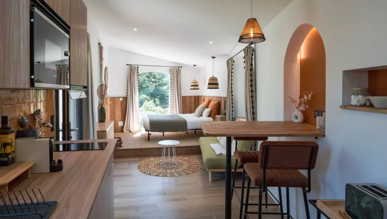 Each of our 4 cabins is independent for your own privacy and gives an access to the shared swimming pool.