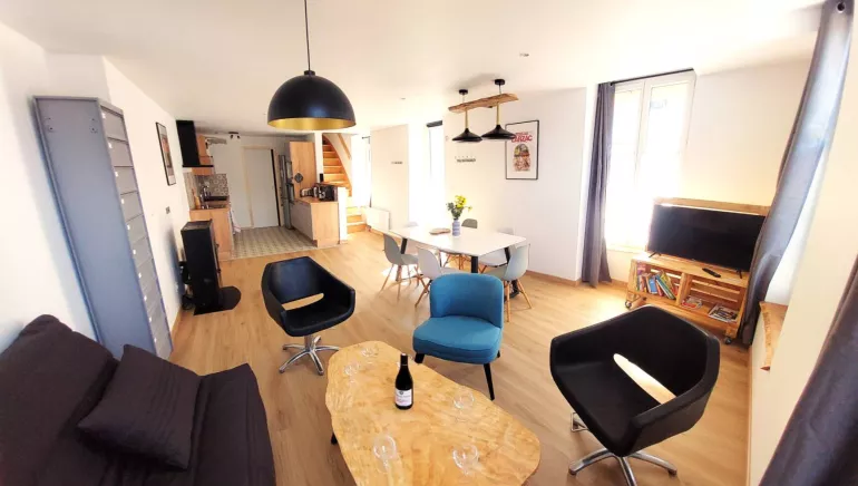 Spacious (110 m2), modern and bright accommodation in the heart of Suisse Normande. Ideally located next to the Orne, the Vélo Francette (greenway), along the GR Tour de la Suisse Normande and the loop of the Hom, close to the nautical base, the town center and the aquatic complex. The fully-equipped accommodation comprises 3 bedrooms, two of which have king-size beds that can be converted into 2 single beds. A sofa bed in the living room converts into a comfortable double bed. The shared courtyard has been designed with your relaxation in mind. A secure bicycle garage with plugs is at your disposal.