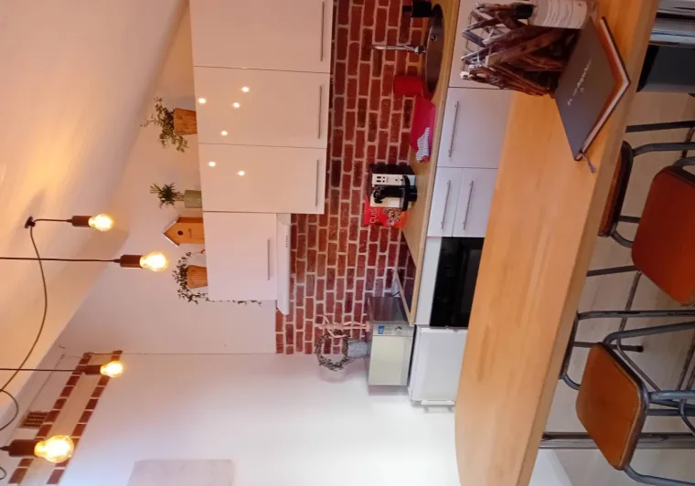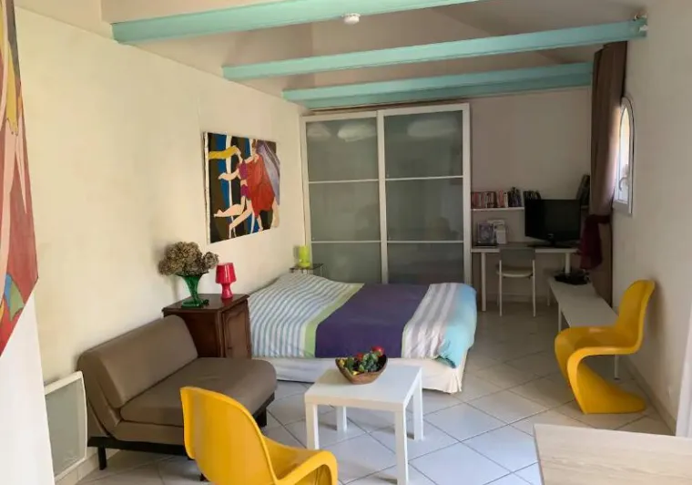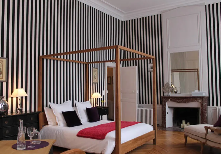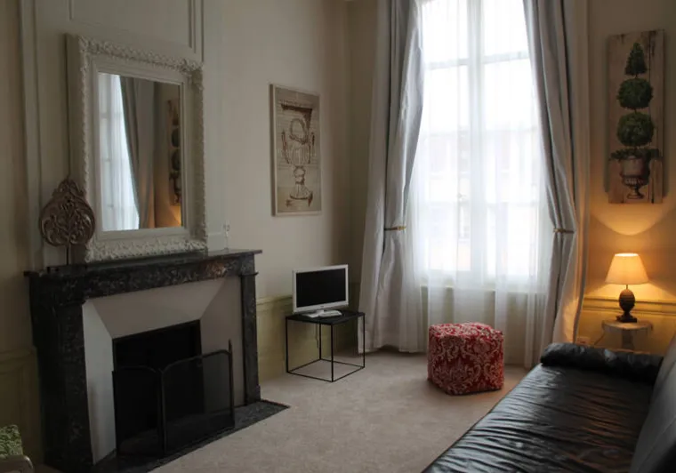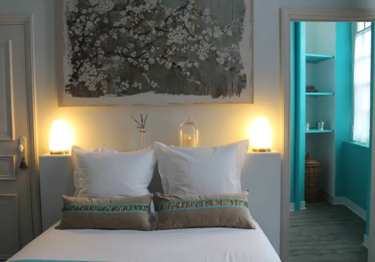 At the heart of the historic area, on the upper floor of a gorgeous mansion that used to house the bishopric of Chartres, are five carefully renovated, furnished suites, perfect for rest and repose. On the second floor overlooking the garden, “Bleu de Chartres” is a bright, 38 m² suite, featuring a bedroom with a queen bed, office area, bathroom and WC. The house offers a cosy, welcoming ambience. Kitchenette equipped with Nespresso machine. WiFi. The charming bonus of this spot is the remarkable “jardin de curé” garden and carefully chosen facilities. Private car park.Localisation