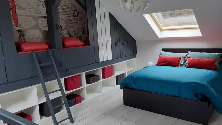 Come and discover this tastefully converted loft. Children will love the hut beds! Ideal for families, it can accommodate between 1 and 6 travelers. At the foot of the Grand Ballon, it's ideally located for discovering Alsace and the Vosges. You'll enjoy a host of nearby activities: hiking, biking, skiing, accrobranches, a lake, summer tobogganing... What's more, the property is just 500 m from the train station and close to numerous shops (bakery, butcher's, tobacconist's, supermarket). 2 restaurants in the village and numerous other restaurants and farm inns nearby.
