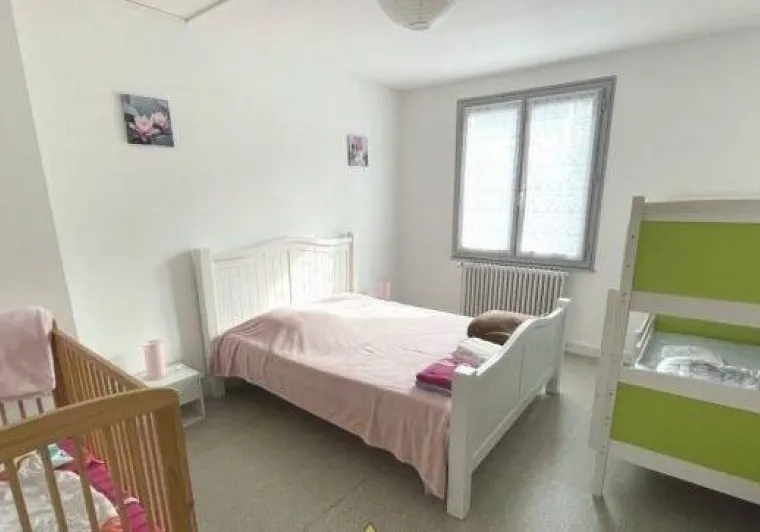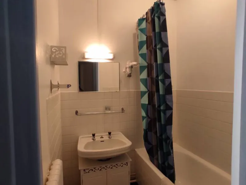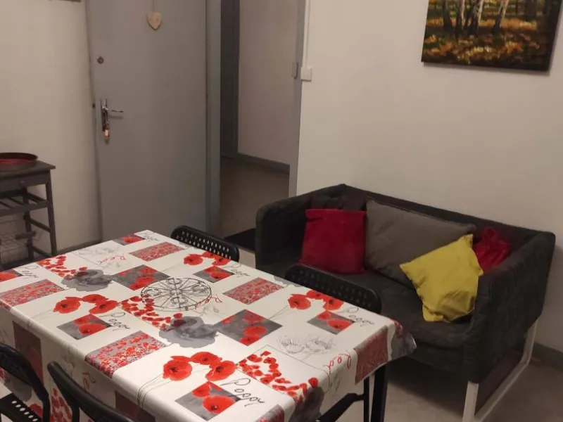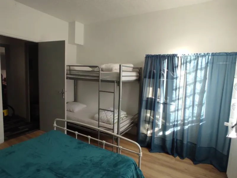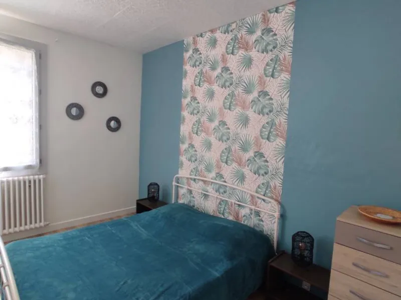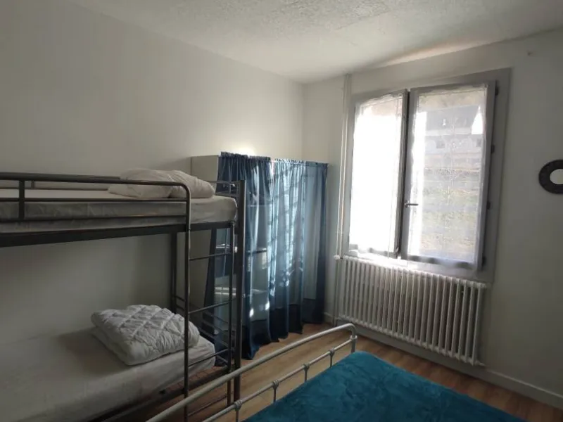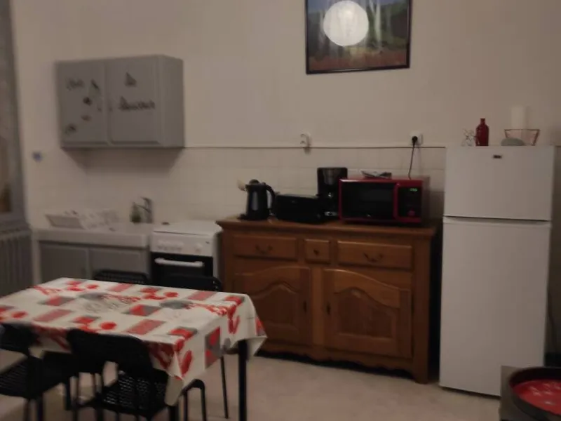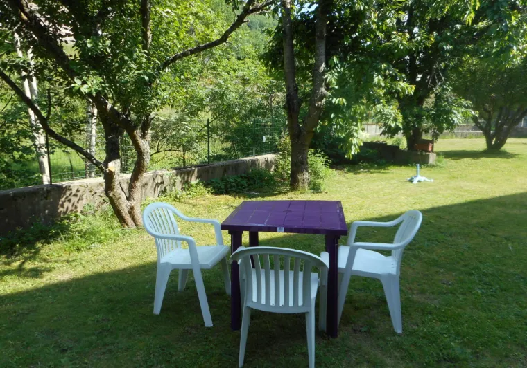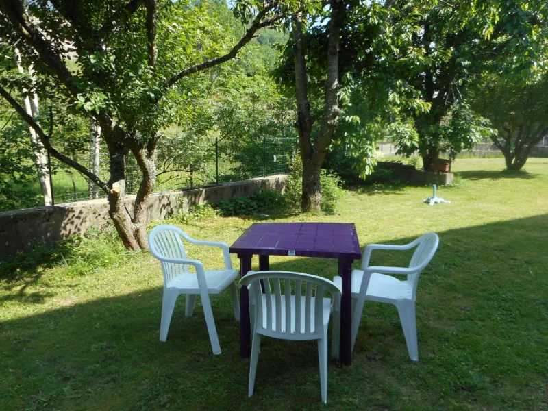 1 pièce principale (cuisine et espace repas), couloir desservant wc et SDB et grande chambre lumineuse, donnant sur le jardin. Possibilité lit bébé/lit enfant.Jardin commun à l'arrière du bâtiment (passer par l'extérieur pour y accéder), au bord du Sioulot, au milieu des arbres fruitiers (salon de jardin).