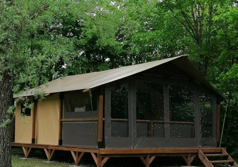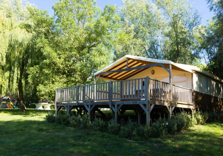 Just a stone's throw from the Loir and the shops in Luché-Pringé, in a 3-star campsite planted with trees and offering a wide range of activities: kayaking, fishing, cycling, swimming pool, leisure centre, 100% digital historical trail, this 32 m² Bali without sanitary facilities sleeps 5 people.It comprises a bedroom with 1 double bed, a bedroom with 1 double bed + a single bed on the mezzanine, a kitchen equipped with crockery, electric hob, microwave, fridge and electric coffee machine.