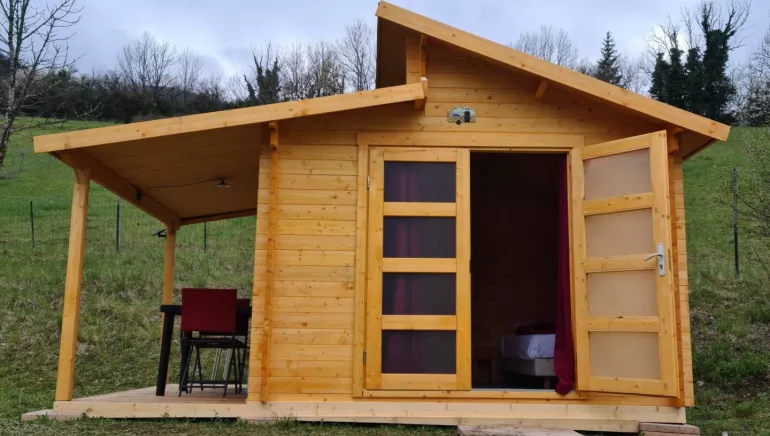 Sheltered terrace with table and chairs, which can also be used to store bicycles. Amenities and water points are just a few steps away, as are a refrigerator, microwave and small oven, available for free use. No electricity.