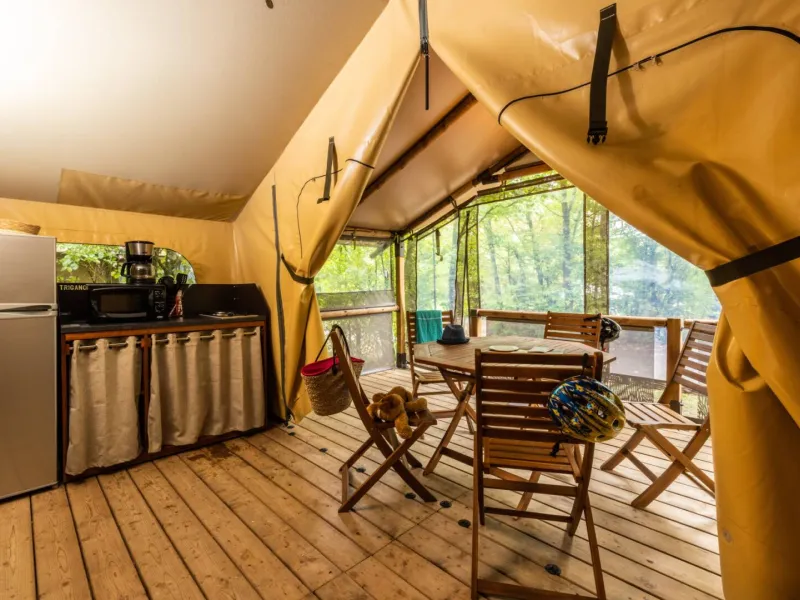 This 30m2 Ecolodge is ideal for families or groups of friends.With its large terrace, the Ecolodge can accommodate up to 7 people. Just a stone's throw from the Loir river and the shops of Luché-Pringé, in a 3-star campsite planted with trees and offering a wide range of activities: kayaking, fishing, cycling, swimming pool, leisure centre, 100% digital history trail, etc.