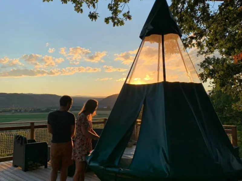 For an unusual experience with your head in the stars, come and sleep in a bubble or in a suspended tent! On top of the perched huts, wake up in the morning to a breathtaking view of the Rhône Valley. Discover our Zulu huts and Savannah lodges for an exotic stay! Or stay closer to nature in a real Indian teepee or in an all-wooden tent with a view over the roofs of the Château de Senaud. In the morning, have your breakfast basket delivered directly to your accommodation (see conditions).Localisation