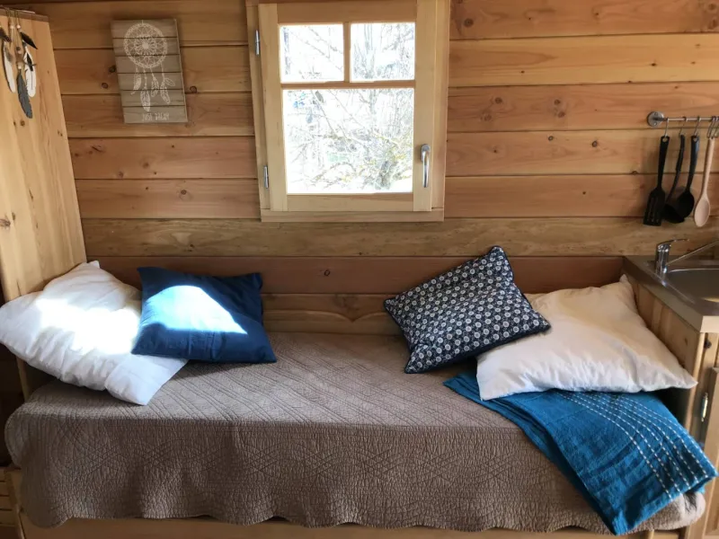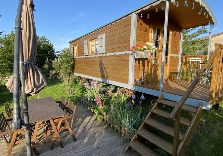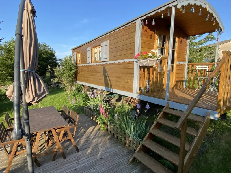 Une roulotte pour 4 personnes, tout confort avec terrasse, jardin, parking…Nombreuses activités sur place ou proche du village (Vol avec les oies, Char à voile à l’aérodrome de St-Flour - Coltines, musée de l’agriculture, restaurants au cœur du village…) 1 chambre avec 2 lits (1 alcôve et 1 gigogne) – 1 salle de bain – 1 WC – Salon de jardin – Barbecue.