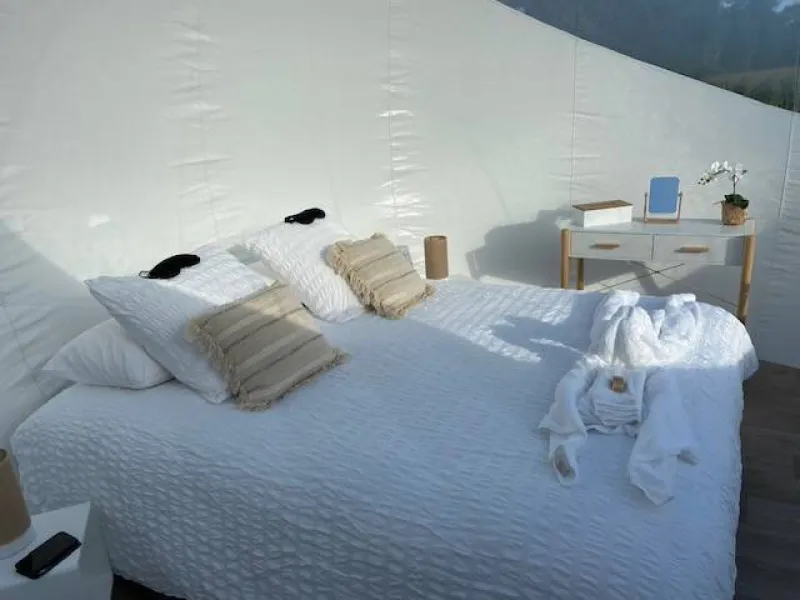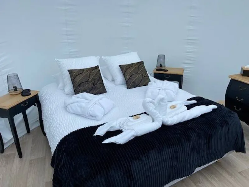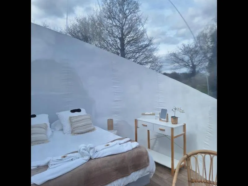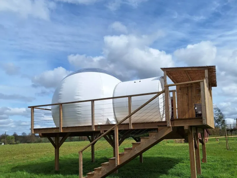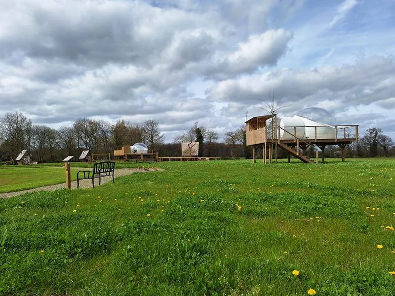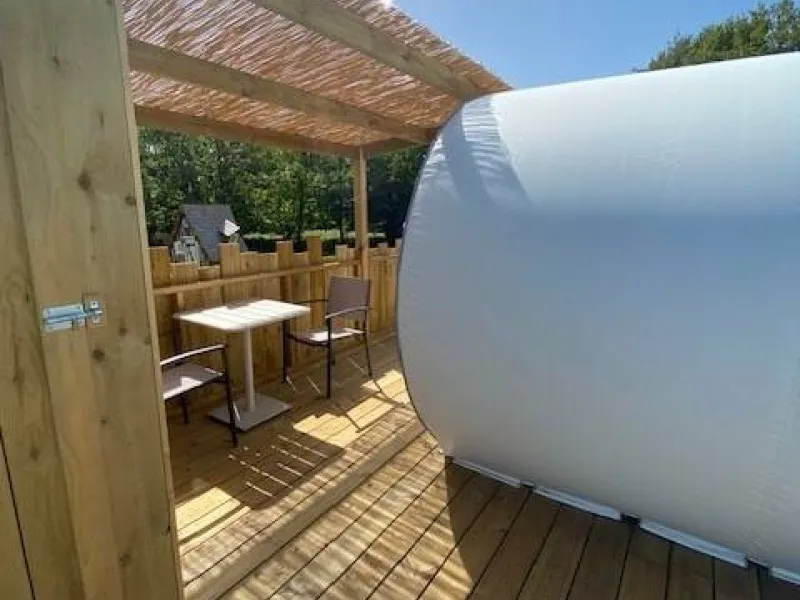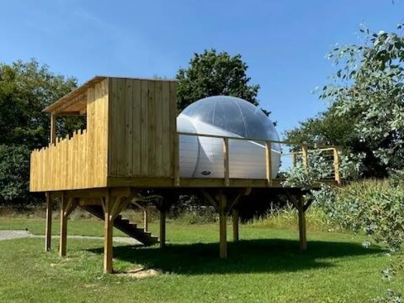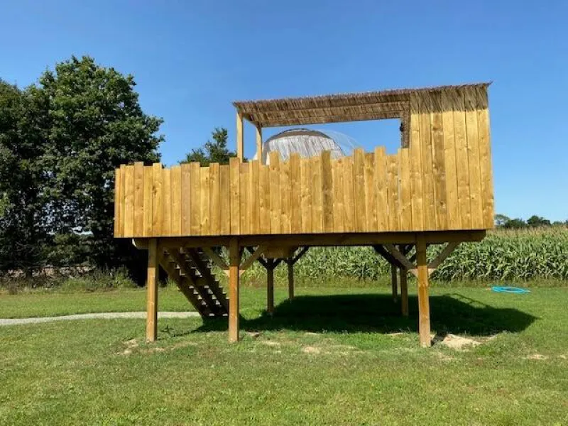 Are you looking for the perfect place to spend a timeless moment together? In the heart of Brocéliande country, Sophie invites you to stay in a bubble. In total connection with nature and in total peace and quiet, this unusual experience can be enjoyed in summer or winter: everything has been done to guarantee maximum comfort and well-being!. Wooden terrace on stilts 2 metres high