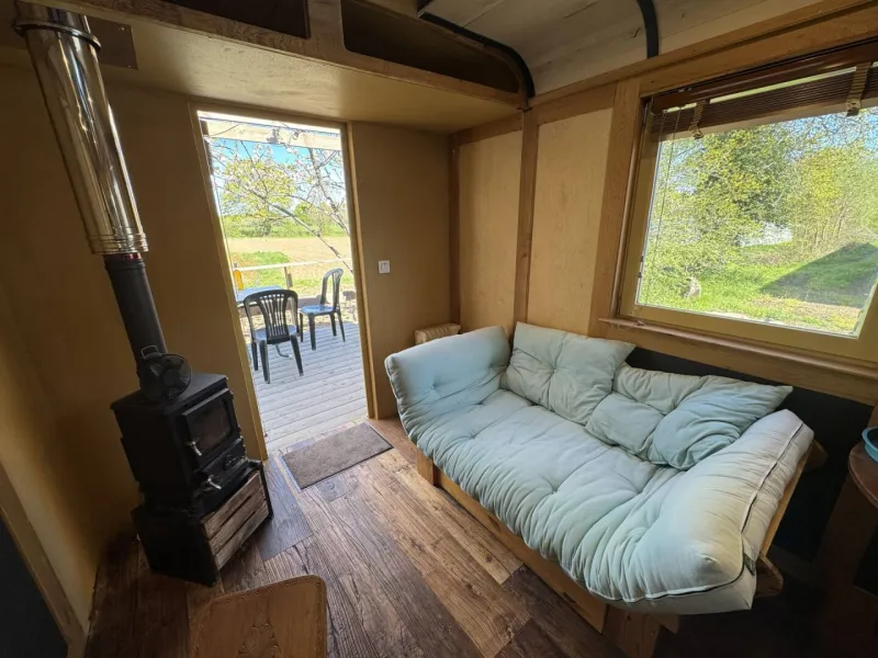 Discover our gipsy caravan, lovingly converted by craftsmen, with quality joinery and fully equipped with toilet, kitchen, bathroom and private shower. Situated in a peaceful setting, it offers an uninterrupted view of the market gardens, providing a peaceful setting. Ideal for a couple or a small family, this caravan is a haven of peace for a unique and rejuvenating stay! Disconnection guaranteed!Localisation