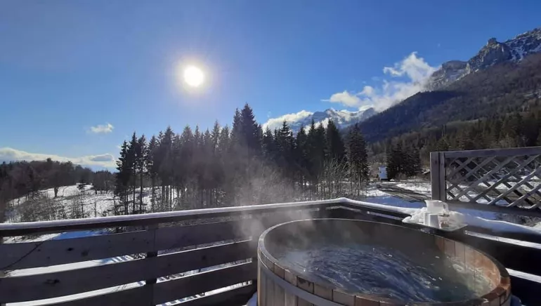 Nos bains nordiques peuvent accueillir entre 4 et 6 personnes. Chaque bain nordique est privatisé et situé sur une grande terrasse panoramique qui vous permettra de savourer un moment de détente avec une vue imprenable sur les montagnes de Belledonne et de la Chartreuse.