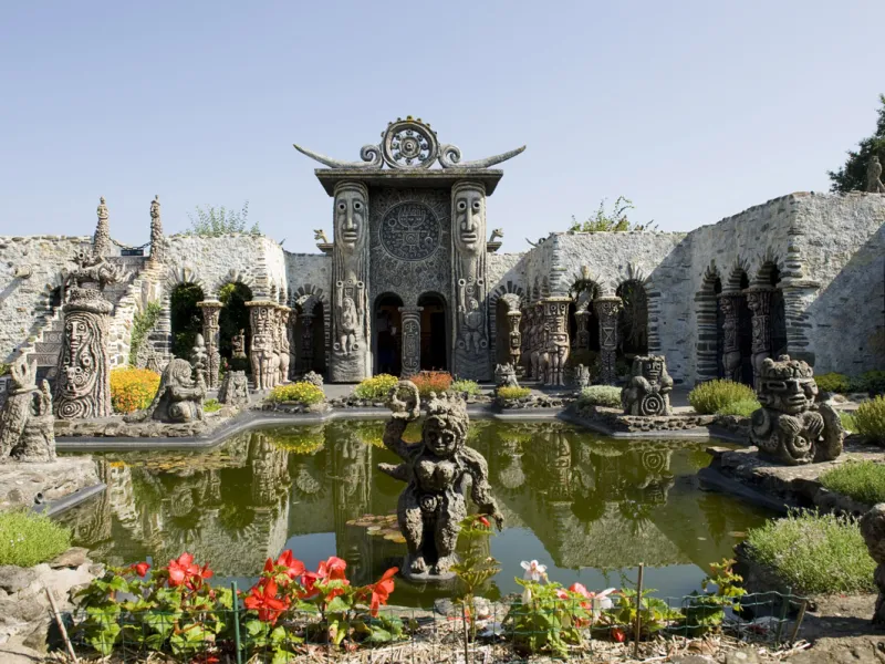 From Laval, pedal towards Renazé by an old fully equipped railway track and halfway, discover the Robert Tatin Museum, fascinating and mysterious at the same time. Robert Tatin was an artist affected by many events of the 20th century which forged him and deeply marked his life and work. Painter, ceramist and sculptor, he settled definitively in Mayenne in 1962 and began the creation of his "Maison des Champs", which gave life to the current museum. An extraordinary architecture, statues of intriguing and intimidating giants, in short, a place not to be missed!Localisation