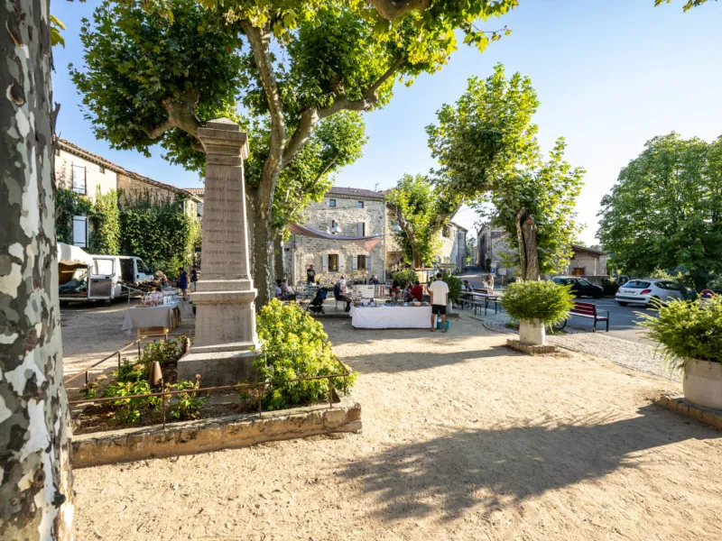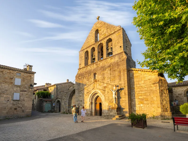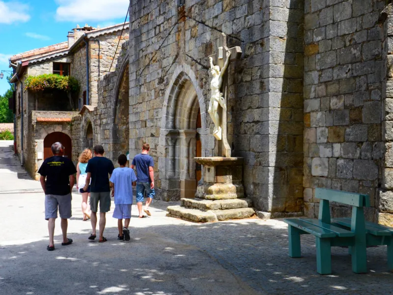 The Church :One must first stop in the centre of the square and take a look around to appreciate the harmony of its sandstone facades of identical height, dominated to the east by the church tower.The Village Square : There is a great absence from this square: the famous Sully of Ailhon. It is in 1593 that Sully had many trees planted to celebrate the conversion of Henry the IV to Catholicism, a conversion that enabled him to accede to the throne of France and bring peace to the kingdom after the religious wars. In Ardèche, three "Sullys" subsisted in the second half of the 20th century in Viviers and Dompnac and Ailhon. In his document on Ailhon, the erudite ardéchois, Albin Mazon indicated in 1898 that the tree, measuring 5.5m in circumference was hollow but still alive, perhaps because it was well watered being used as a public convenience. It lived still in the 1980s and hosted the gossip of the ladies of Ailhon or the Estramaïre, the tinsmith who came twice a year to install his brushwood, hearth and tin bath to re-tin the pots and pans of the village. In 1999, the town had to cut down the old trunk that had become dangerous, but it reconstructed it and gave it shelter ithe back of the church.