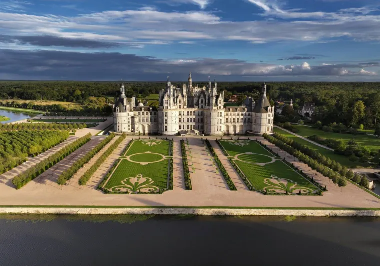 Chef d'oeuvre de la Renaissance inscrit au patrimoine mondial de l'Unesco, le château de Chambord, XVIe s., est l'un des sites les plus visités du Val de Loire. Domaine royal de François Ier, d'inspiration féodale et italienne, il aurait été dessiné par Léonard de Vinci. Le fameux escalier à double révolution ainsi que 440 pièces caractérisent ce joyau entouré d'un parc clos de 5 440 ha, réserve nationale cynégétique. Garage à vélos sécurisé pour vos montures.