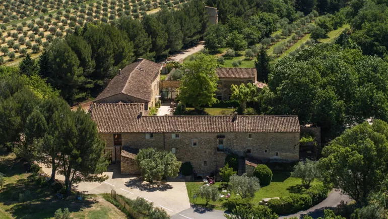 Between Coustellet and the village of "Les Beaumettes", on D900 road, aside the cycling path, our mill is a nice rest near the Calavon river.
