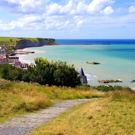 Depuis Bayeux, découvrez les Plages du Débarquement à vélo. Sur de petites routes, alternez entre paysages grandioses et hauts lieux historiques : Omaha Beach, la Pointe du Hoc, le cimetière Américain de Colleville. Flânez dans les villages balnéaires et visitez Caen, ses abbayes et son Mémorial.