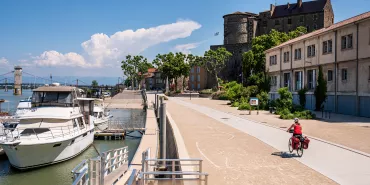 Au départ du superbe lac Léman, ViaRhôna serpente entre les monts et vallées du Haut-Rhône pour rejoindre l’élégante cité de Lyon. Ce parcours vélo traverse des paysages à couper le souffle, aux confins des deux Savoie et du Bugey, alternance de gorges, de lacs et de marais, ponctués de villages authentiques. Un itinéraire cyclable avec de belles voies vertes pour tous sur les rives du Rhône. Si vous voyagez en famille préférez un départ de Seyssel (gare TER).