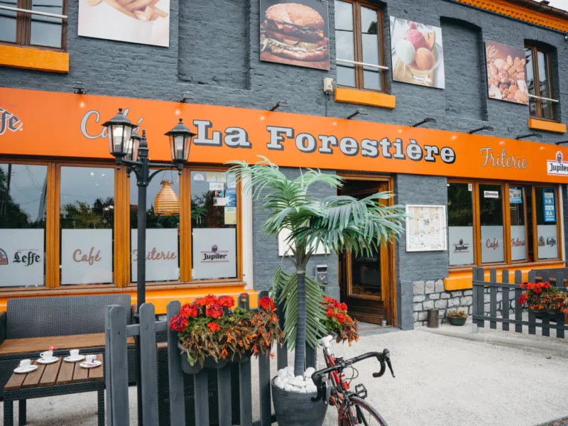 Idéalement situé pour une pause lors d’une randonnée sur la Voie Verte, la Forestière est un Café Rando Nord, il est donc possible de s’y poser après une randonnée et d’y manger un sandwich sorti de son sac. La Forestière vous accueille d’ailleurs pour les petites ou les grandes faims : son dépôt de pain et de pâtisseries ravira les bouches sucrées, et la friterie calera les estomacs le midi ou le soir.Lors des beaux jours, il est possible de se restaurer à l’extérieur, avec une belle vue sur le bocage avesnois. Les enfants pourront profiter des jeux : toboggans, balançoires, etc.