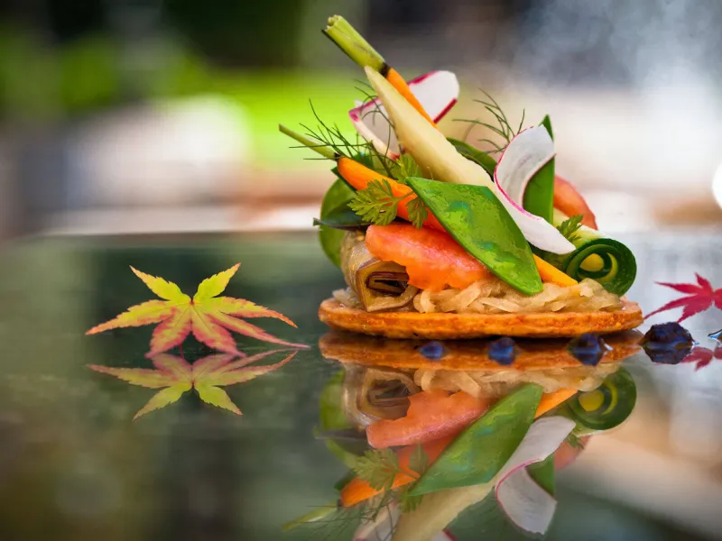 L'assiette signée Mickaël FURNION, toute en fraîcheur et contraste, propose un festival de couleurs et de saveurs toujours en harmonie avec son environnement.Localisation