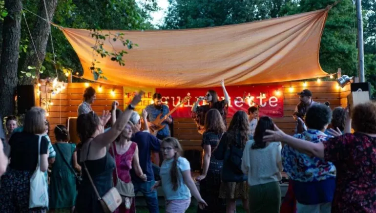 La Guinguette Folle Allier est un bar en plein air, avec une partie pouvant abritée une 50aine de repas.