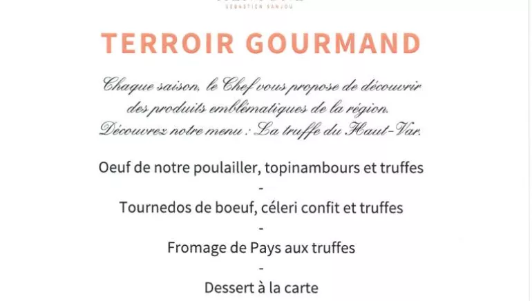 Le menu est élaboré par Sébastien Sanjou, chef étoilé du Relais des Moines aux Arcs et du Trente-Trois à Paris. Son approche, alliant tradition et créativité, sublime la richesse du terroir local à travers des assiettes élégantes et savoureuses. Chaque plat est pensé en parfaite harmonie avec les vins biologiques du domaine, offrant une véritable expérience de dégustation. 3 entrées, 3 plats et 3 desserts, renouvelés de façon régulière se dégustent en semaine. Le dimanche c’est un menu unique autour de la grande rôtissoire de la table. Elle est allumée pour vous offrir un vrai déjeuner dominical construit autour de viandes et de poissons rôtis au feu de bois. ️